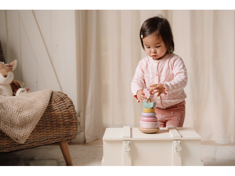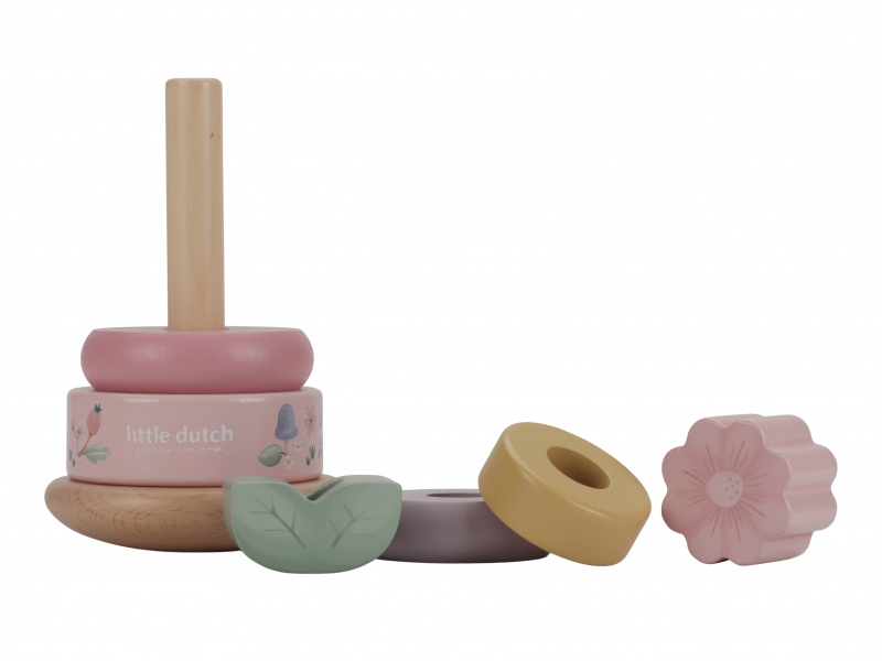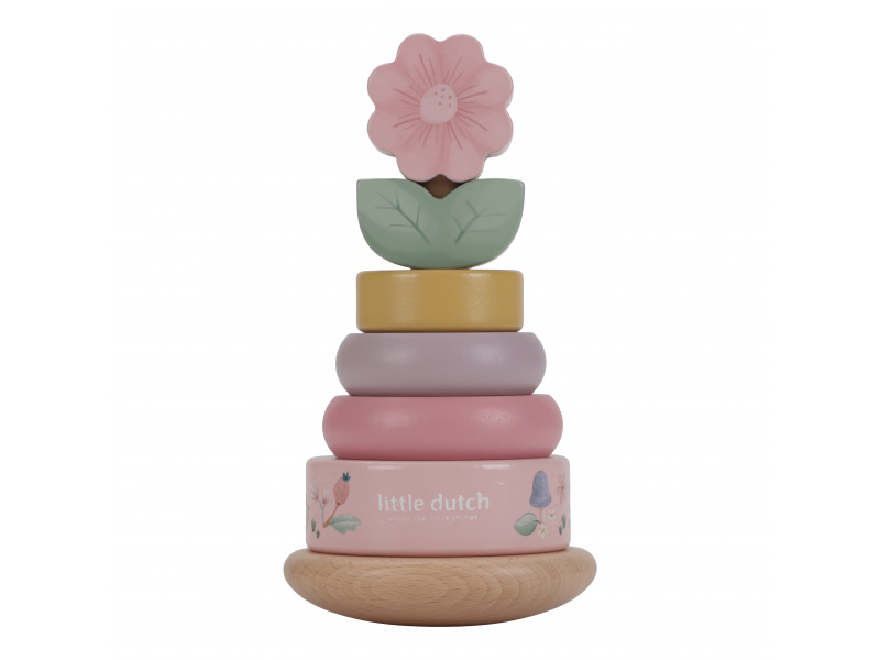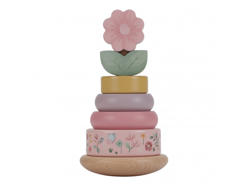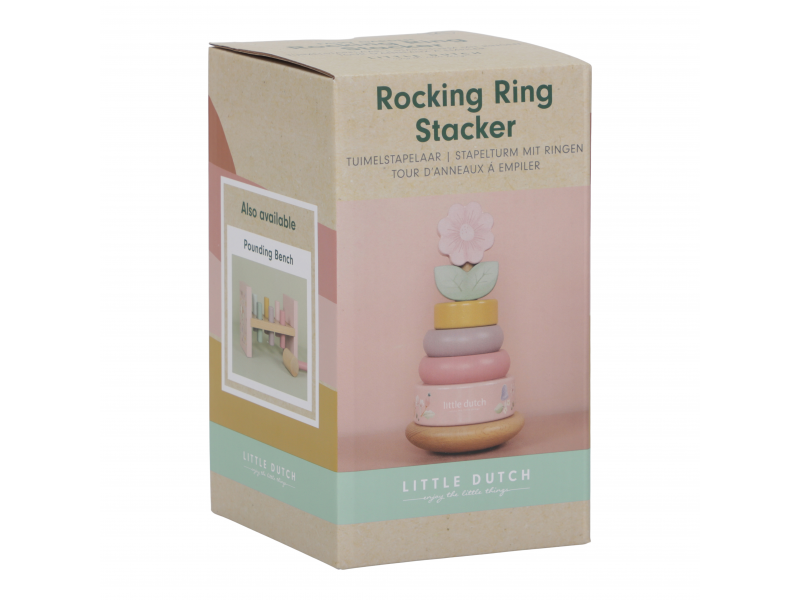 Hravé dřevěné nasazovací kroužky pro děti jsou navrženy tak, aby rozvíjely jejich koordinaci rukou a očí zábavnou a praktickou hrou. Děti se snaží umístit dřevěné kroužky ve správném pořadí a vytvořit z nich pyramidu. To je docela výzva, protože pyramida má půlkulatou základnu a tak se kýve na všechny strany! Hračka je součástí designové kolekce hraček a doplňků Little Dutch Fairy Garden inspirované životem na zahradě. Vyrobeno z dřeva certifikovaného FSC. Rozměry: 10 x 10 x 19 cm Vhodné pro děti od 12 měsíců.