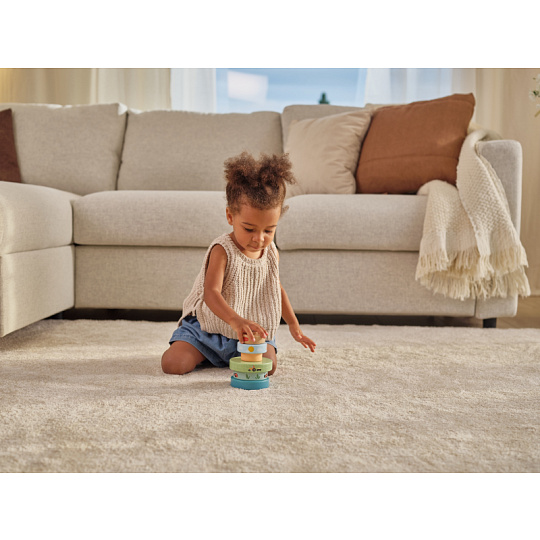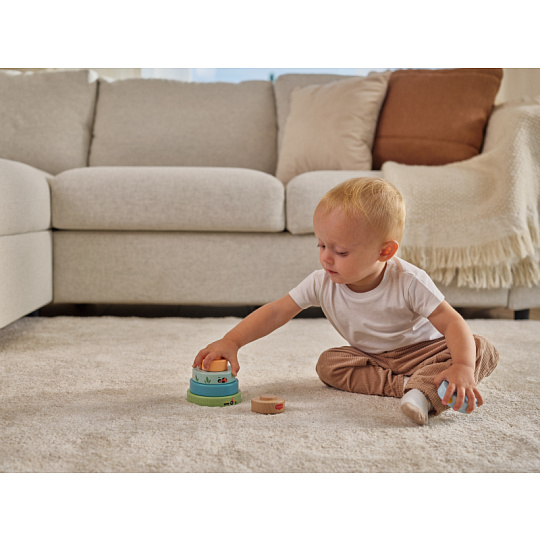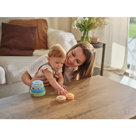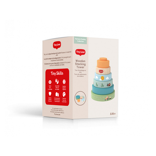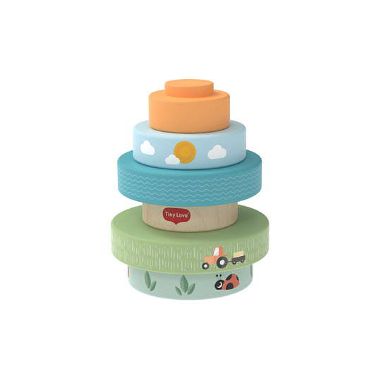 Dřevěné nasazovací kroužky Tiny Love nabízí různé možnosti hraní - děti je mohou nasazovat a stavět do věže, třídit podle velikosti, kutálet s nimi a postupně objevovat a rozlišovat barvy, velikosti a jednoduché souvislosti. Kroužky s krásným potiskem motivů ze života na farmě jsou lehké a dobře se drží i malými dětskými ručičkami. Hračka přirozeně rozvíjí jemnou motoriku, koordinaci ruka–oko i první logické myšlení. Hračka pomáhá rozvíjet jemnou motoriku, jednotlivé smysly, emoční inteligenci i kreativitu dítěte. 6 barevných dřevěných kroužků je vyrobeno z kvalitního dřeva z odpovědně obhospodařovaných lesů. Rozměry: 13 x 10 x 10 cm Vhodné pro děti od 6 měsíců.