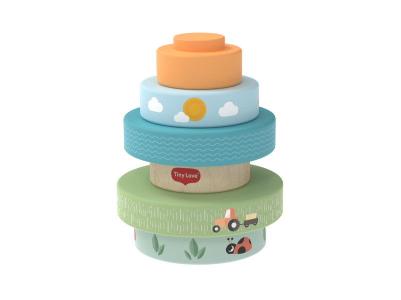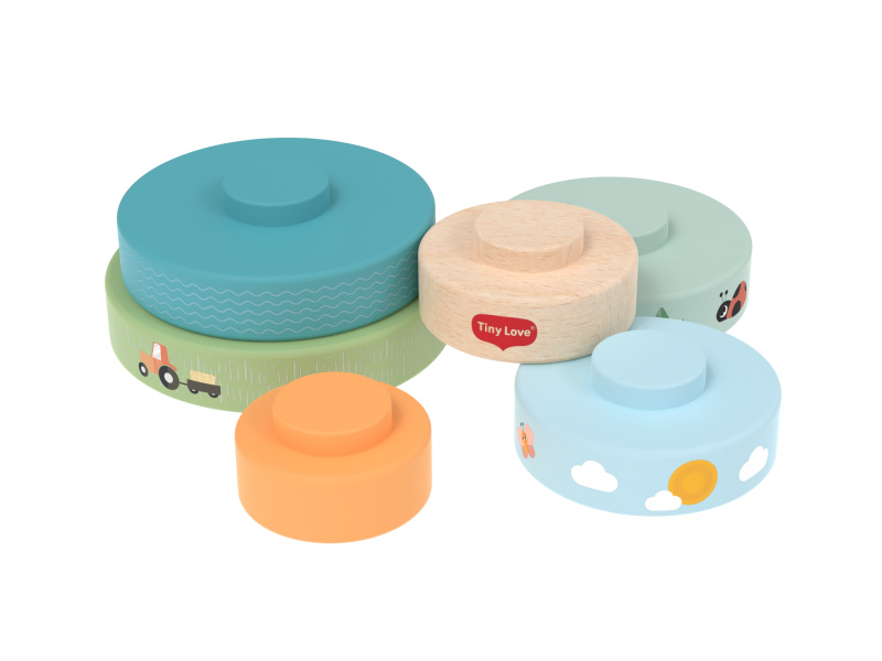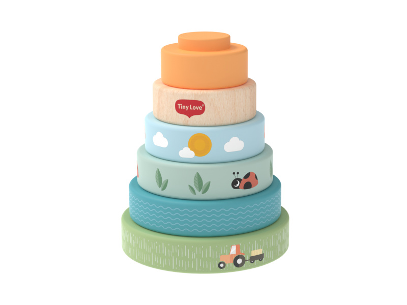 Dřevěné nasazovací kroužky Tiny Love nabízí různé možnosti hraní - děti je mohou nasazovat a stavět do věže, třídit podle velikosti, kutálet s nimi a postupně objevovat a rozlišovat barvy, velikosti a jednoduché souvislosti. Kroužky s krásným potiskem motivů ze života na farmě jsou lehké a dobře se drží i malými dětskými ručičkami. Hračka přirozeně rozvíjí jemnou motoriku, koordinaci ruka–oko i první logické myšlení. Hračka pomáhá rozvíjet jemnou motoriku, jednotlivé smysly, emoční inteligenci i kreativitu dítěte. 6 barevných dřevěných kroužků je vyrobeno z kvalitního dřeva z odpovědně obhospodařovaných lesů. Rozměry: 13 x 10 x 10 cm Vhodné pro děti od 6 měsíců.