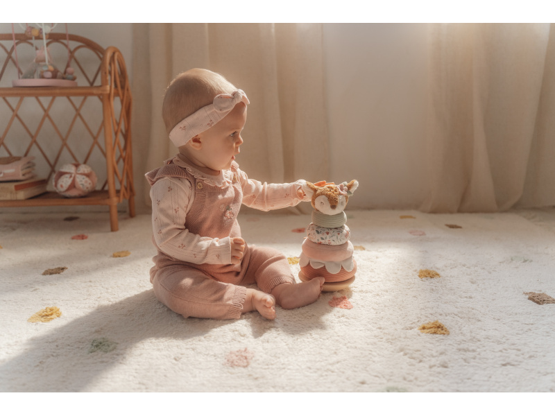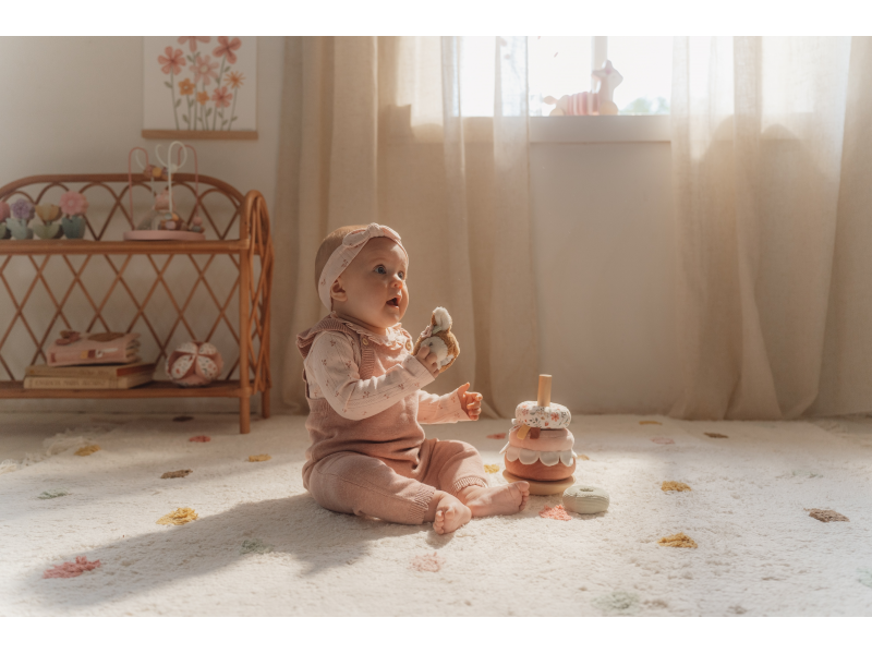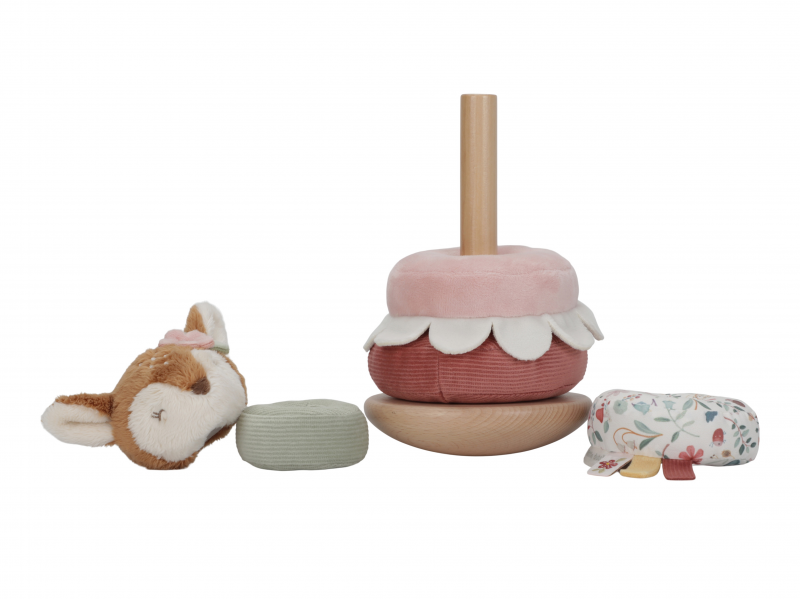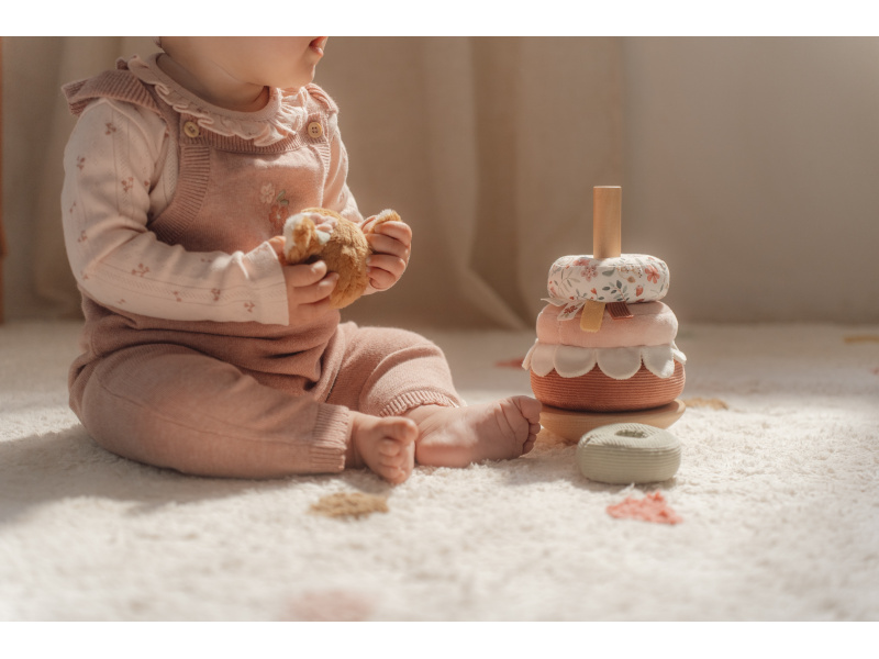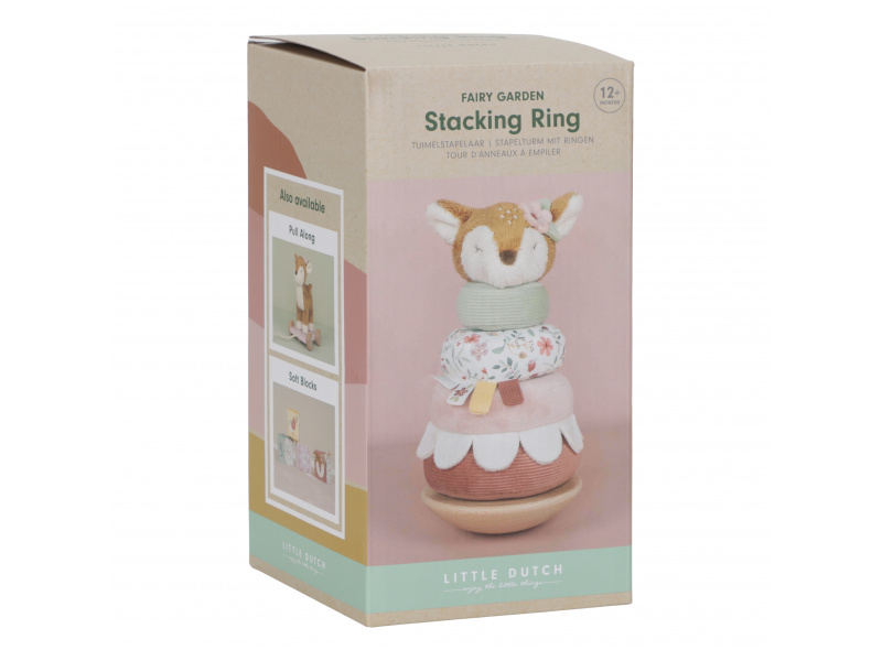 Plyšové nasazovací kroužky pro děti jsou navrženy tak, aby rozvíjely jejich koordinaci rukou a očí zábavnou a praktickou hrou. Děti se snaží umístit kroužky ve správném pořadí a vytvořit z nich pyramidu. To je docela výzva, protože pyramida má dřevěnou půlkulatou základnu a tak se kýve na všechny strany! Hračka je součástí designové kolekce hraček a doplňků Little Dutch Fairy Garden inspirované životem na zahradě. Vyrobeno z dřeva certifikovaného FSC. Rozměry: 11 x 11 x 26 cm Vhodné pro děti od 12 měsíců.