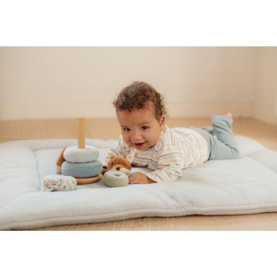 Plyšové nasazovací kroužky pro děti jsou navrženy tak, aby rozvíjely jejich koordinaci rukou a očí zábavnou a praktickou hrou. Děti se snaží umístit kroužky ve správném pořadí a vytvořit z nich pyramidu. To je docela výzva, protože pyramida má dřevěnou půlkulatou základnu a tak se kýve na všechny strany! Hračka je součástí designové kolekce hraček a doplňků Little Dutch Forest Friends inspirované životem v lese. Vyrobeno z dřeva certifikovaného FSC. Rozměry: 11 x 11 x 26 cm Vhodné pro děti od 12 měsíců.