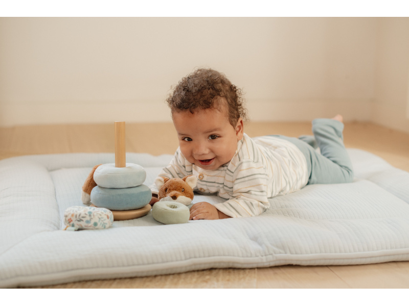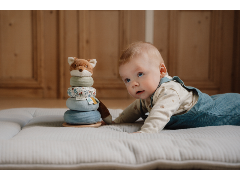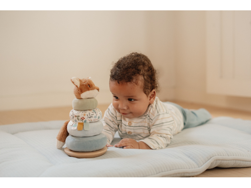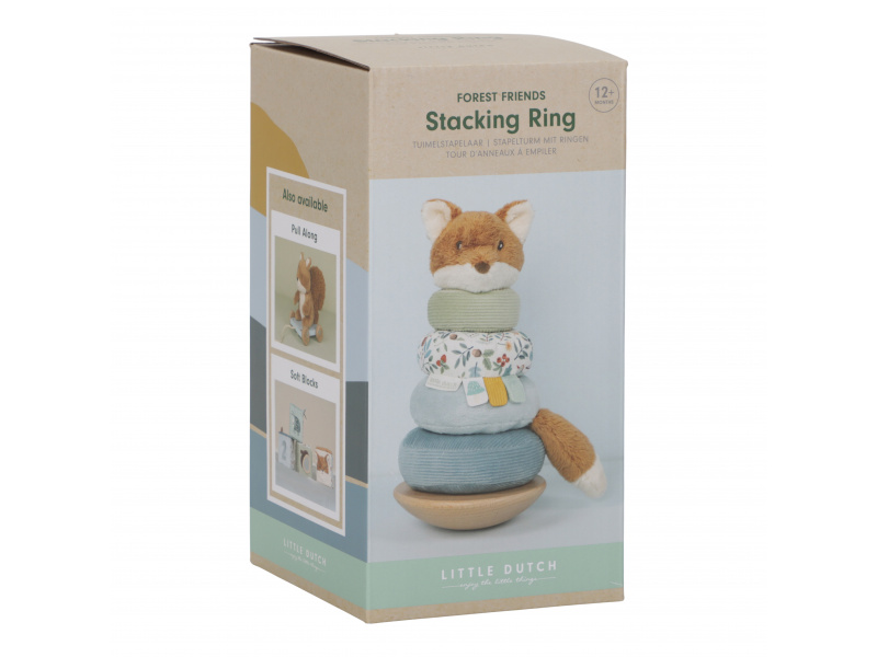 Plyšové nasazovací kroužky pro děti jsou navrženy tak, aby rozvíjely jejich koordinaci rukou a očí zábavnou a praktickou hrou. Děti se snaží umístit kroužky ve správném pořadí a vytvořit z nich pyramidu. To je docela výzva, protože pyramida má dřevěnou půlkulatou základnu a tak se kýve na všechny strany! Hračka je součástí designové kolekce hraček a doplňků Little Dutch Forest Friends inspirované životem v lese. Vyrobeno z dřeva certifikovaného FSC. Rozměry: 11 x 11 x 26 cm Vhodné pro děti od 12 měsíců.