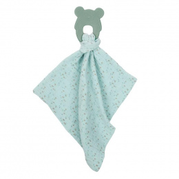 NATTOU Kousátko silikonové bez BPA s bavlněnou dečkou 28 x 28 cm mint