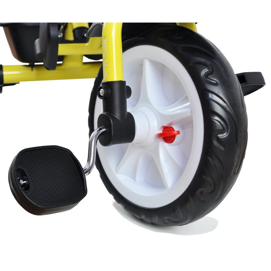 Dětská šlapací tříkolka s rukojetí Axel je určena pro děti ve věku od 1 do 3 let. Je vyrobena z kvalitních a odolných materiálů. Má pohodlné a ergonomicky tvarované sedlo, jehož vzdálenost k řídítkům lze snadno nastavit a tím přizpůsobit tříkolku věku a výšce dítěte. Tříkolka patří k produktům skupiny GROW UP, tedy roste s dítětem. Na předním kole lze uvolnit náhon na pedály a pomocí vodící tyče tlačit malého závodníka, když mu dojdou síly. Široká kola vyrobená z tvrzené pěny EVA, zaručí pohodlí a odolnost na každém povrchu. Do dvou praktických košíků si váš malý závodník naskládá všechny potřebné hračky a může vyrazit vstříc dobrodružství. Kombinace kovové konstrukce a součástek vyrobených z nejkvalitnějších materiálů zaručuje odolnost za všech podmínek. Pro maximální bezpečí dítěte má tříkolka tříbodové bezpečnostní pásy.