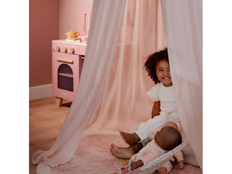 Krásná nebesa nad postýlku vytvoří vašemu dítěti útulné místo na spaní i na hraní. Můžete je zavěsit nad postýlku či košík na miminko, ve starším věku dítěte z nich můžete vytvořit i kouzelný hrací stan zavěšením nad měkkou hrací podložku či kobereček. Vznikne tak krásná dekorace dětského pokoje a zároveň útulný koutek na hraní i snění. Lehká látka nebes je připevněna na obruči a s pomocí úchytu ji snadno připevníte ke stropu. Rozměry: 250 cm x 50 cm Složení: 100% organická bavlna Možno prát v pračce.
