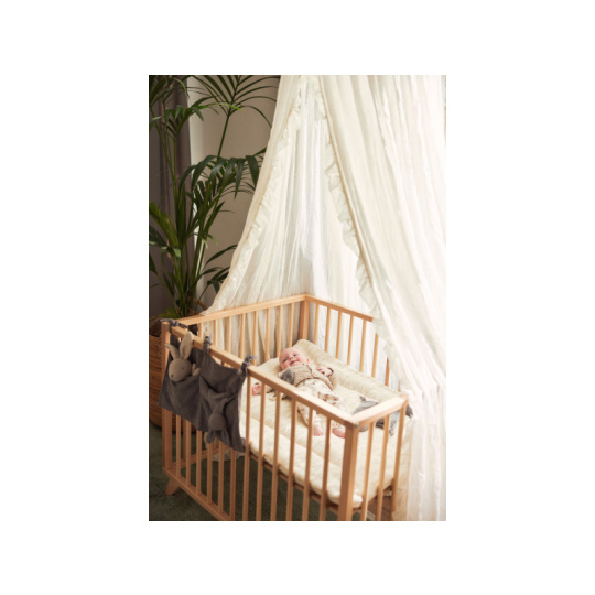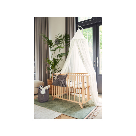 Krásná nebesa nad postýlku z jemné, lehké tkaniny vytvoří vašemu dítěti útulné místo na spaní i na hraní. Stanou se krásnou dekorací dětského pokoje, kterou využijete nejenom nad postýlku pro miminko, ale můžete je použít i pro zútulnění větší postele ve starším věku dítěte. Nebesa se zavěšují na samostatně prodávaný kovový držák nebo je možné je zavěsit od stropu. Rozměry: výška 245 cm, šířka 420 cm Složení: 80% polyester, 20% bavlna
