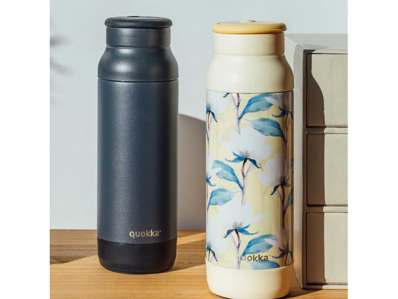 Termoska Quokka Pulse z vysoce kvalitní dvoustěnné oceli se spolehlivým, 100% těsnicím uzávěrem udrží váš nápoj dle potřeby teplý či studený. Široké hrdlo umožňuje vložení kostek ledu. Termoska udrží teplotu studeného nápoje s ledem až 48 hodin, studeného nápoje až 16 hodin a teplého nápoje až 12 hodin. Silikonové poutko, které je zakomponované do víčka láhve, usnadňuje přenášení. Quokka Pulse je součástí kolekce lahví a hrnků Drop Safe se speciálním dnem Smartgrip®, které při postavení na hladký povrch brání převržení a nechtěnému vylití obsahu láhve. Tvar láhve je vhodný do většiny držáků nápojů v autě. Objem: 700 ml Rozměry: 240 x 79 mm Nerezový materiál neabsorbuje pachy a neobsahuje BPA. Termoska není vhodná do myčky ani mikrovlnné trouby.