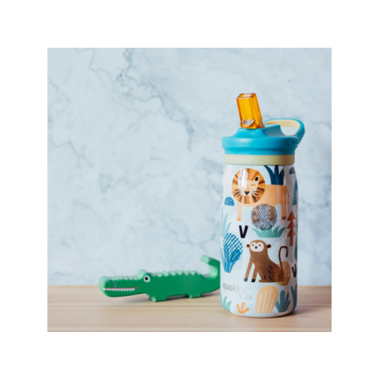 Dětská termoláhev Quokka Pop Kids z vysoce kvalitní dvoustěnné oceli udrží nápoj i během horkých letních dní příjemně studený. Láhev s pítkem a brčkem umožňuje snadné pití bez nutnosti naklánění láhve. Zaklapávací pítko brání vylití obsahu láhve. Široké hrdlo umožňuje vložení kostek ledu a zároveň se díky němu láhev snadno čistí. Údržbu usnadňuje i odnímatelné široké brčko. Díky držadlu se láhev snadno přenáší. Termoláhev udrží teplotu studeného nápoje až 10 hodin, při vložení kostek ledu až 18 hodin. Na spodní části láhve je prostor pro napsání jména nebo nakreslení obrázku, aby nedošlo k záměně ve školce či ve škole. Objem: 445 ml Rozměry: 184 x 72 mm Nerezový materiál neabsorbuje pachy a neobsahuje BPA. Termoláhev není vhodná do myčky ani mikrovlnné trouby.