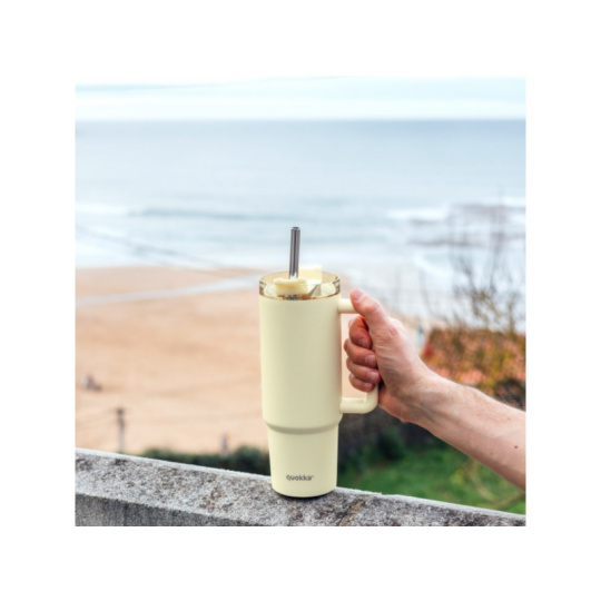 Nerezový termohrnek s brčkem Vibe Pastel Yellow 880 ml