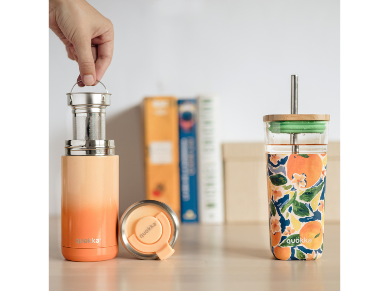 Termohrnek Quokka Boost z vysoce kvalitní dvoustěnné oceli se spolehlivým, 100% těsnicím uzávěrem udrží váš nápoj dle potřeby teplý či studený. Termohrnek udrží teplotu studeného nápoje s ledem až 24 hodin, studeného nápoje až 10 hodin a teplého nápoje až 4 hodiny. Součástí termohrnku je vyjímatelné sítko, vhodné např. na sypaný čaj. Široké hrdlo umožňuje vložení kostek ledu. Víčko se zaklapávacím uzávěrem umožňuje snadné pití přímo z hrnku. Objem: 400 ml Rozměry: 167 x 74 mm Nerezový materiál neabsorbuje pachy a neobsahuje BPA. Termohrnek není vhodný do myčky ani mikrovlnné trouby.