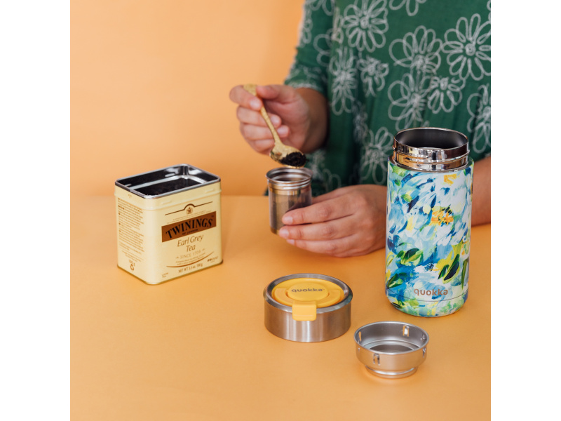 Termohrnek Quokka Boost z vysoce kvalitní dvoustěnné oceli se spolehlivým, 100% těsnicím uzávěrem udrží váš nápoj dle potřeby teplý či studený. Termohrnek udrží teplotu studeného nápoje s ledem až 24 hodin, studeného nápoje až 10 hodin a teplého nápoje až 4 hodiny. Součástí termohrnku je vyjímatelné sítko, vhodné např. na sypaný čaj. Široké hrdlo umožňuje vložení kostek ledu. Víčko se zaklapávacím uzávěrem umožňuje snadné pití přímo z hrnku. Objem: 400 ml Rozměry: 167 x 74 mm Nerezový materiál neabsorbuje pachy a neobsahuje BPA. Termohrnek není vhodný do myčky ani mikrovlnné trouby.