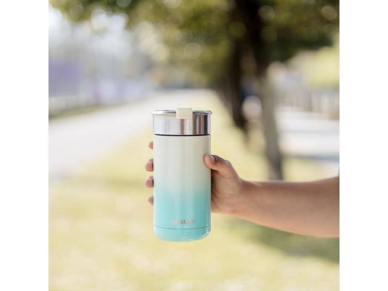 Termohrnek Quokka Boost z vysoce kvalitní dvoustěnné oceli se spolehlivým, 100% těsnicím uzávěrem udrží váš nápoj dle potřeby teplý či studený. Termohrnek udrží teplotu studeného nápoje s ledem až 24 hodin, studeného nápoje až 10 hodin a teplého nápoje až 4 hodiny. Součástí termohrnku je vyjímatelné sítko, vhodné např. na sypaný čaj. Široké hrdlo umožňuje vložení kostek ledu. Víčko se zaklapávacím uzávěrem umožňuje snadné pití přímo z hrnku. Objem: 400 ml Rozměry: 167 x 74 mm Nerezový materiál neabsorbuje pachy a neobsahuje BPA. Termohrnek není vhodný do myčky ani mikrovlnné trouby.