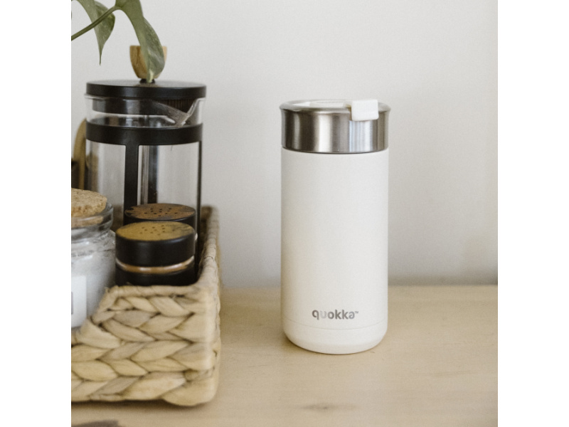Termohrnek Quokka Boost z vysoce kvalitní dvoustěnné oceli se spolehlivým, 100% těsnicím uzávěrem udrží váš nápoj dle potřeby teplý či studený. Termohrnek udrží teplotu studeného nápoje s ledem až 24 hodin, studeného nápoje až 10 hodin a teplého nápoje až 4 hodiny. Součástí termohrnku je vyjímatelné sítko, vhodné např. na sypaný čaj. Široké hrdlo umožňuje vložení kostek ledu. Víčko se zaklapávacím uzávěrem umožňuje snadné pití přímo z hrnku. Objem: 400 ml Rozměry: 167 x 74 mm Nerezový materiál neabsorbuje pachy a neobsahuje BPA. Termohrnek není vhodný do myčky ani mikrovlnné trouby.