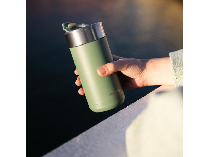 Termohrnek Quokka Boost z vysoce kvalitní dvoustěnné oceli se spolehlivým, 100% těsnicím uzávěrem udrží váš nápoj dle potřeby teplý či studený. Termohrnek udrží teplotu studeného nápoje s ledem až 24 hodin, studeného nápoje až 10 hodin a teplého nápoje až 4 hodiny. Součástí termohrnku je vyjímatelné sítko, vhodné např. na sypaný čaj. Široké hrdlo umožňuje vložení kostek ledu. Víčko se zaklapávacím uzávěrem umožňuje snadné pití přímo z hrnku. Objem: 400 ml Rozměry: 167 x 74 mm Nerezový materiál neabsorbuje pachy a neobsahuje BPA. Termohrnek není vhodný do myčky ani mikrovlnné trouby.