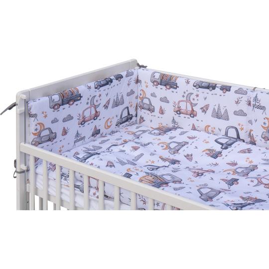 Dětská postýlka se stahovací bočnicí - bílá - 120x60 cm s kompletní výbavou Měsíční sen Barva soupravy: Autíčka šedá