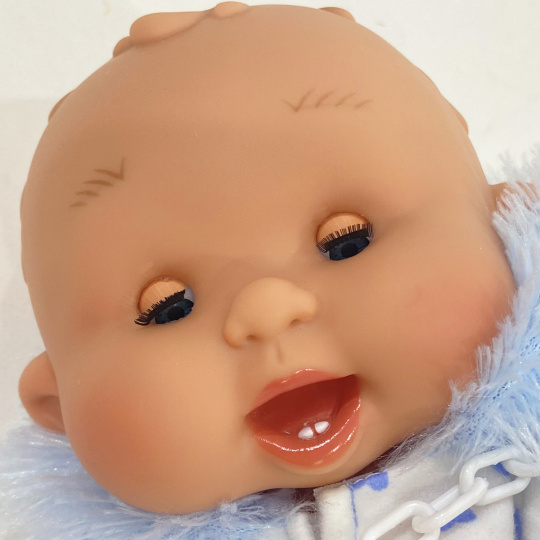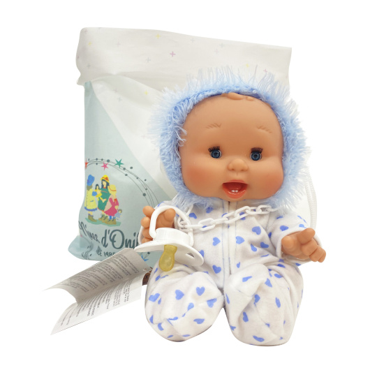 | Ručně vyrobené mrkací miminko, plaváček, chlapeček je vyrobena z vinylu a lze se koupat. Plaváček má mrkací oči.Velikost miminka je 26 cm. Krásné miminko chlapeček, plaváček, je vyroben do nejjemnějších detailů a má pohlaví. Miminko má na sobě kombinezu s kapuckou. Součástí je dudlík. Panenka má velikost 26 cm. Miminko jemně a trvale voní a je vyrobeno ve Španělsku. Baleno v krásném vaku, který lze využít jako batůžek. |