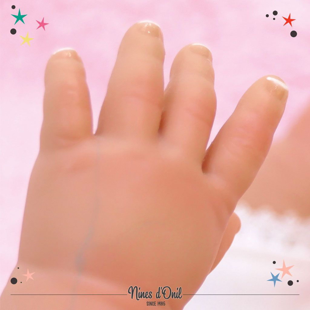 | Ručně vyrobené kloubové, realistické španělské miminko s měkkým tělem, vinylovými končetinami a hlavičkou. Váha miminka je také reálná, podobná opravdovému miminku 2 kg. Speciální úprava kloubů končetin a výplně tělíčka umožňuje miminku nastavení a posazení jako u "živého" miminka. Na končetinách jsou viditelné detaily jako faldíčky a zabarvení kůže, žilky jako u miminka . Na nohou a rukou jsou vidět i nehtíky. Na sobě má bohatě zdobený overal, pletený kabátek, čepičku a na nohou pletené capáčky. Součástí miminka, které je veliké 48 cm je lahvička na pití, dudlíček s klipem na připevnění na oblečení miminka, měkkoučká dečka, hračka - hvězda, plenka a rodný list panenky. Panenka jemně a trvale voní a je vyrobená ve Španělsku. Panenka je zabalená v krásné dárkové krabici.. |