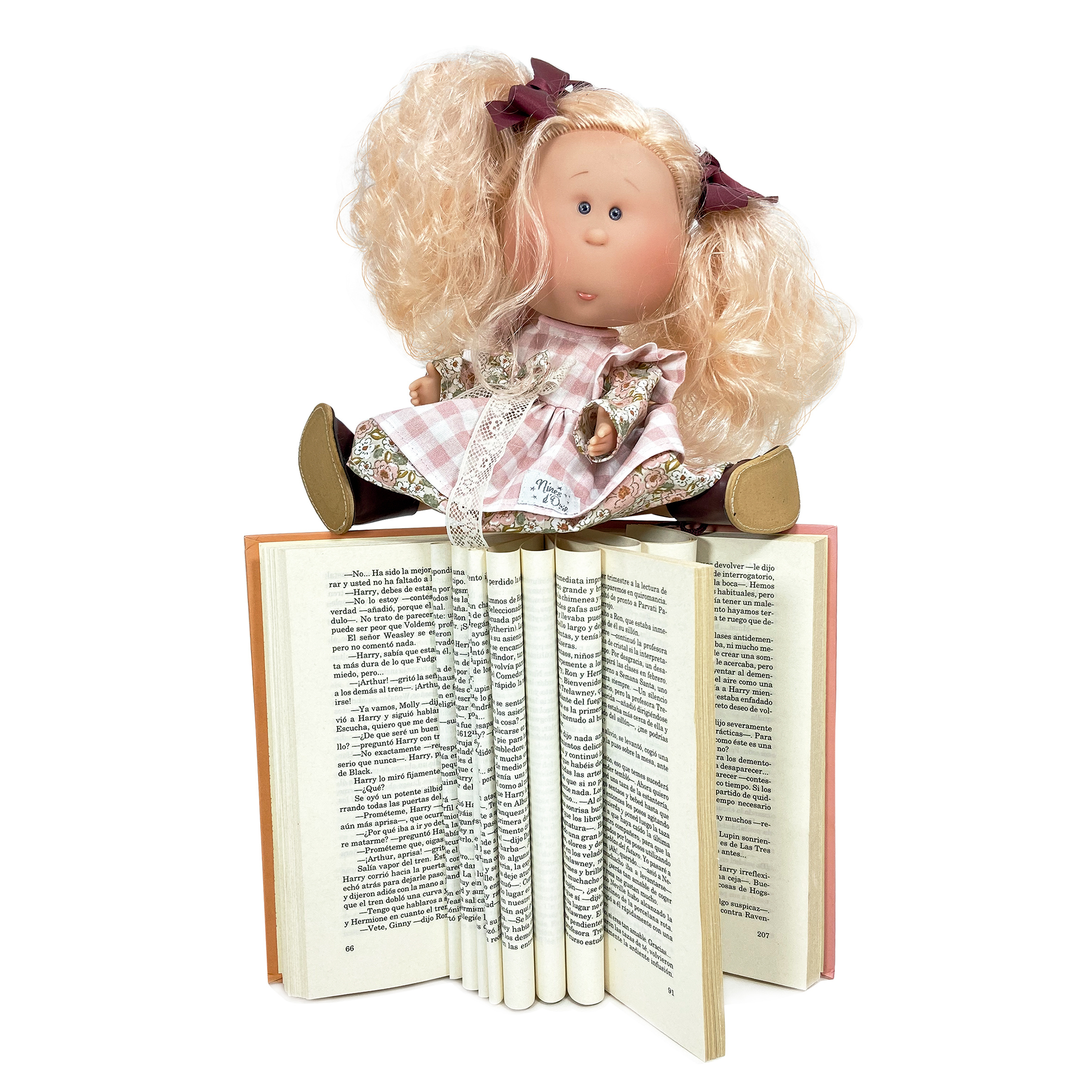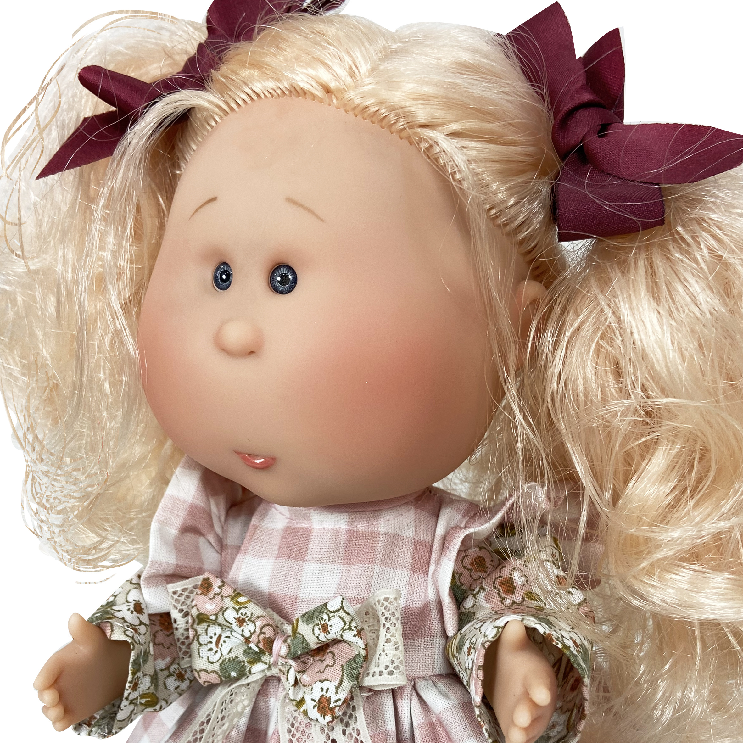 Ručně vyrobená panenka Mia má vinylové tělíčko a dlouhé česací vlásky po celé hlavě, ze kterých se dají vytvářet účesy.