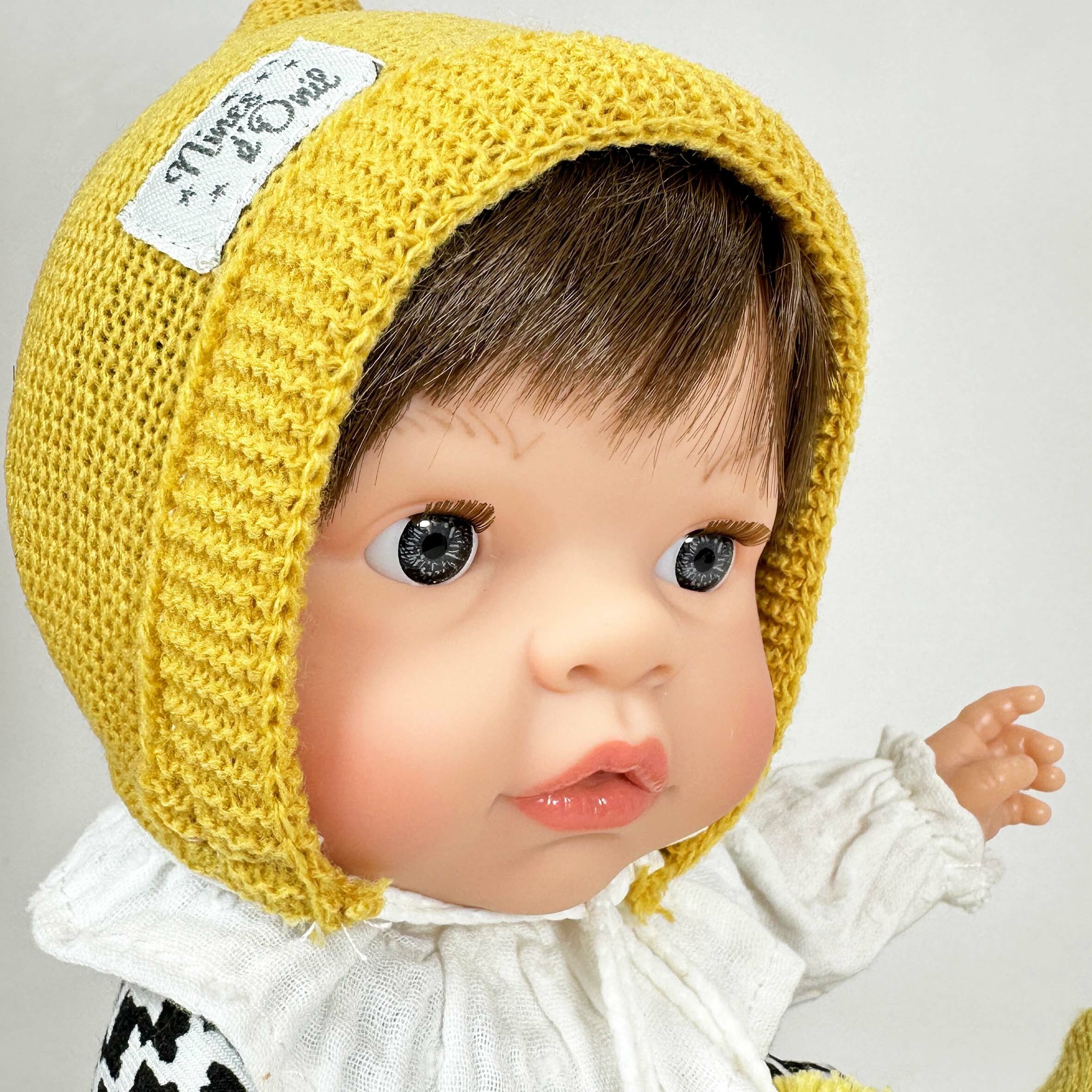 | Ručně vyrobené miminko, plaváček, chlapeček s česacími vlásky po celé hlavě, je vyrobena z vinylu a lze se koupat. Panenka je kloubová. Velikost miminka je 37 cm. Krásné miminko chlapeček, plaváček, je vyrobena do nejjemnějších detailů a má pohlaví. Miminko má na sobě košilku s kanýrem, kalhoty vyrobeno z mušelínu a pletenou čepici a capáčky.. Součástí je i dudlíček. Miminko jemně a trvale voní a je vyrobeno ve Španělsku. Baleno v krásném vaku, který lze využít jako batůžek. Panenka má certifikaci španělské vlády, že je vyrobená originál ve Španělsku. |