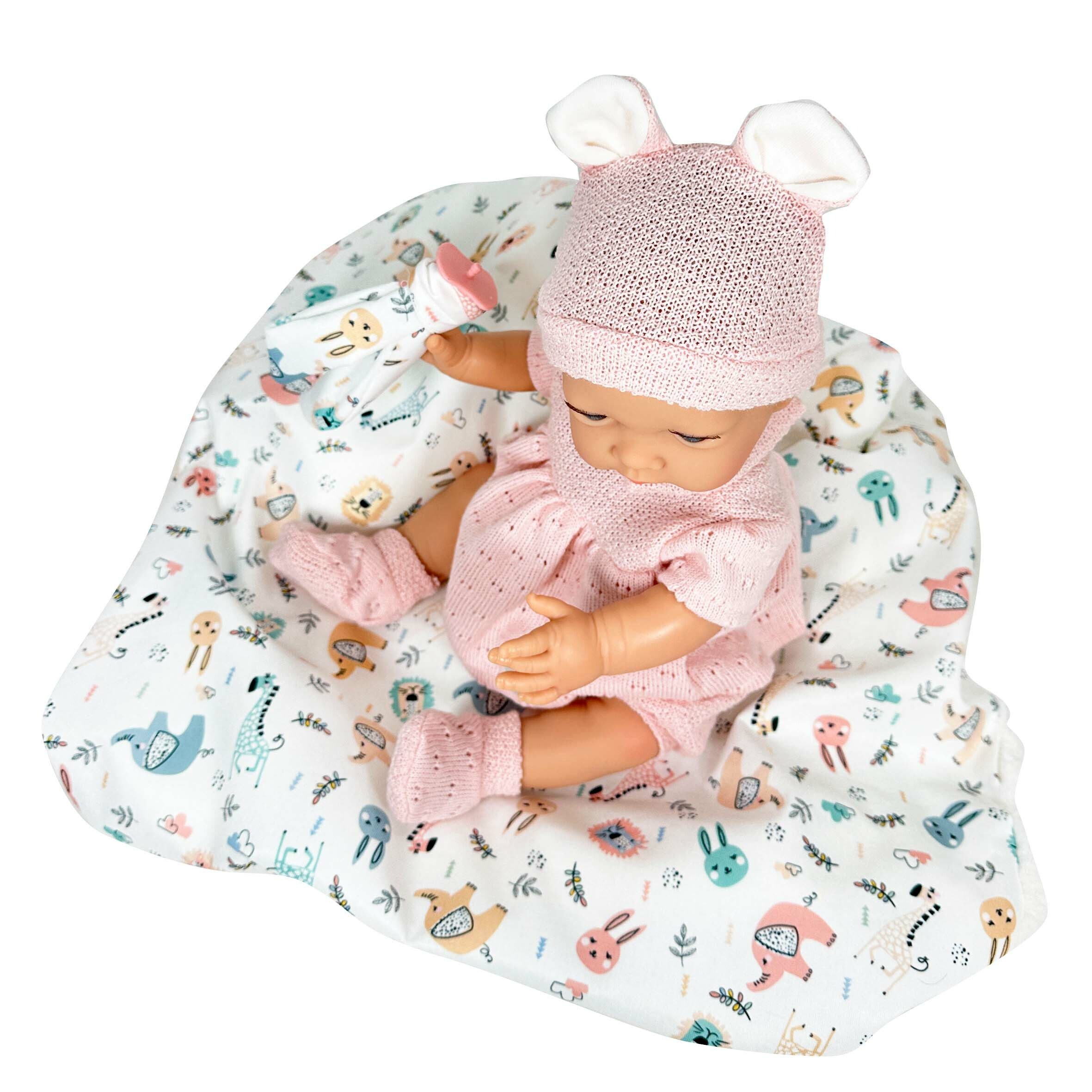 | REBORN,miminko, holčička , které lze koupat. Ručně vyrobené realistické španělské miminko s celo vinylovým tělem. Miminko je vyrobené do nejjemnějších detailů s pohlavím . Na sobě má pletené šatičky s kalhotkami a pletenou čepičku. Na nohou má pletené capáčky. Součástí miminka, které je veliké 45 cm je dudlíček se spinkáčkem Panenka jemně a trvale voní a je vyrobená ve Španělsku. Panenka je zabalená v látkovém vaku, který lze nosit jako batůžek. Panenka má certifikaci španělské vlády, že je vyrobená originál ve Španělsku. |