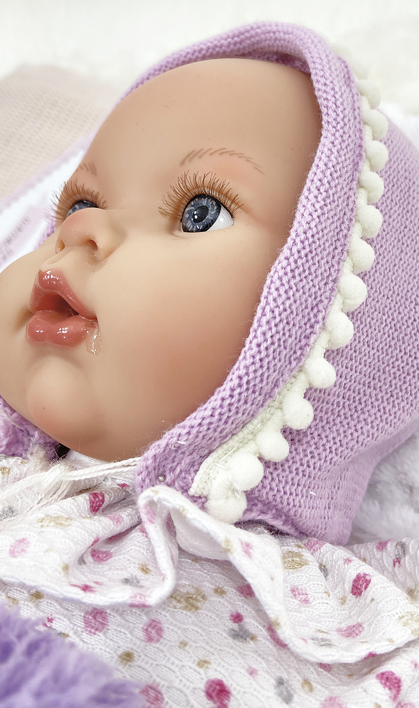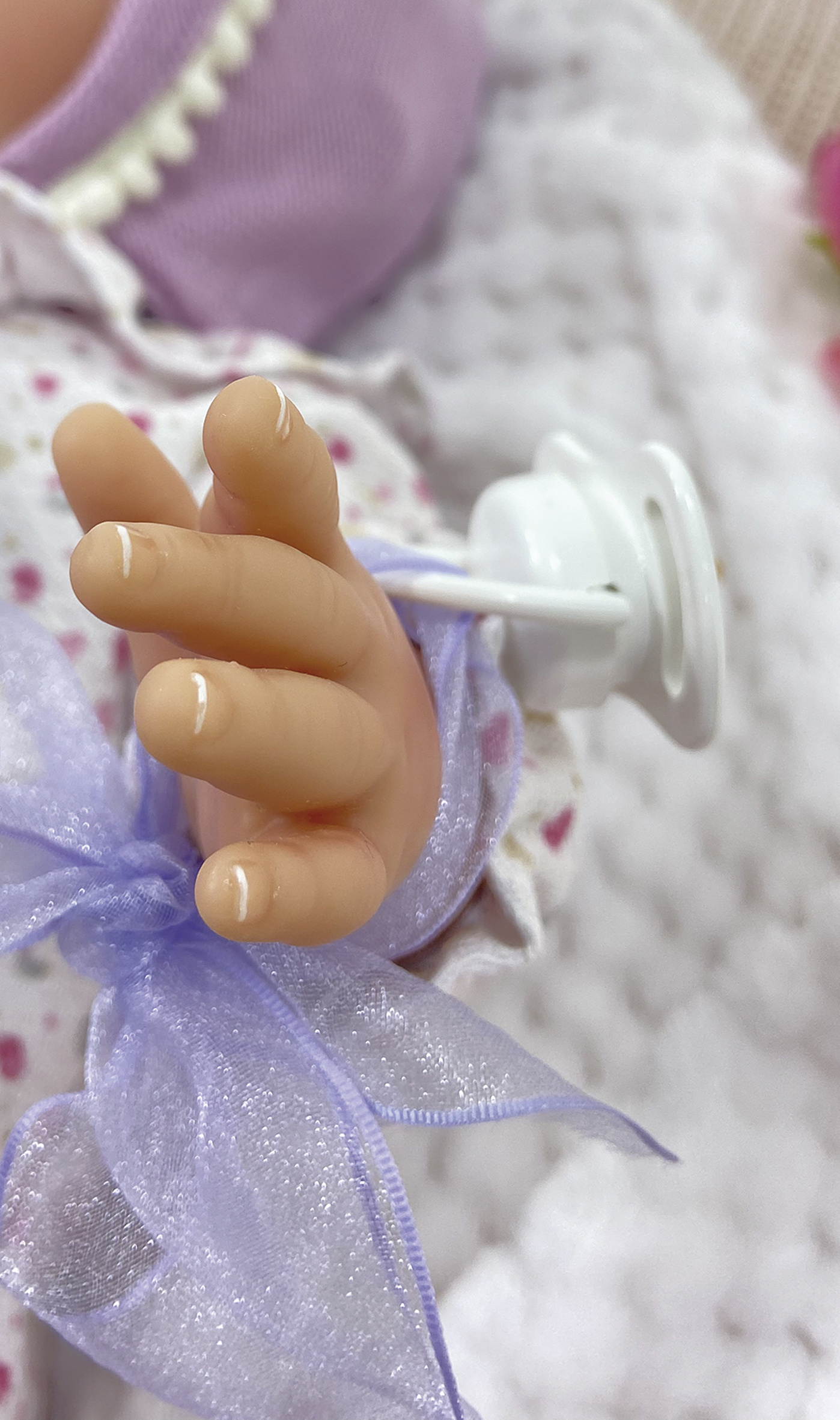 Na končetinách jsou viditelné detaily jako faldíčky a zabarvení kůže, žilky jako u miminka . Na nohou a rukou jsou vidět i nehtíky.