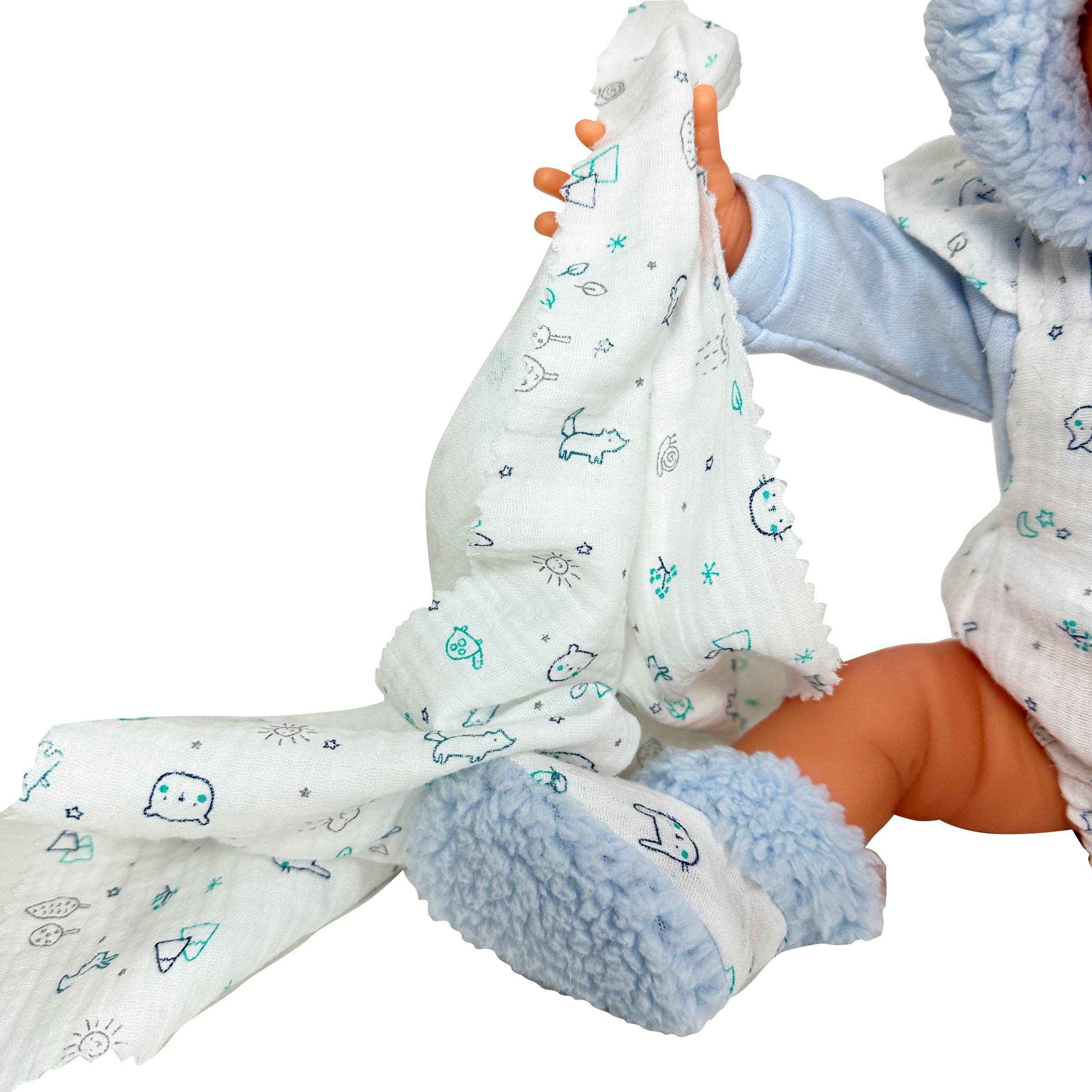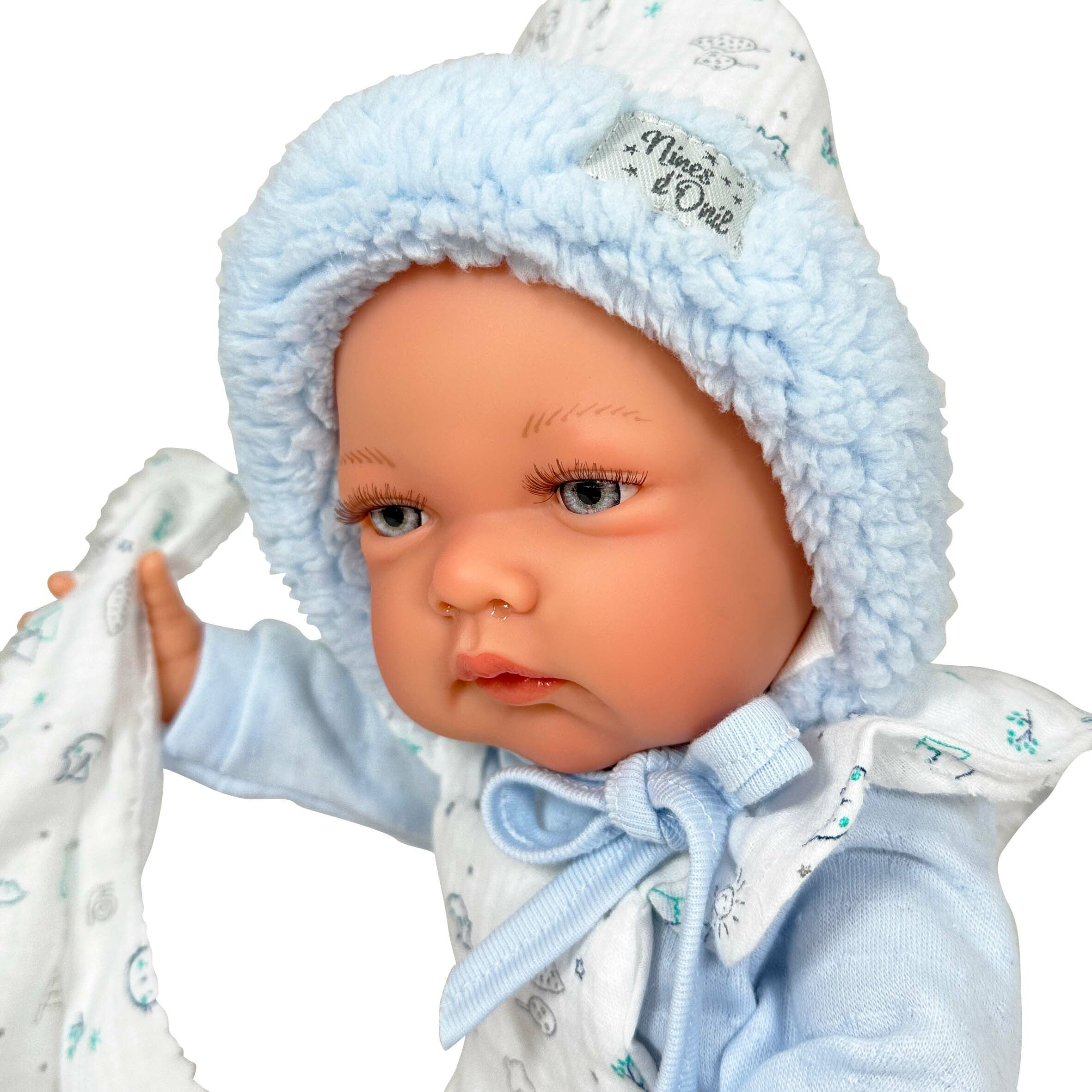| Jedinný REBORN, který lze koupat. Ručně vyrobené kloubové, realistické španělské miminko s celo vinylovým tělem, který je na dotek silikonové. Miminko je speciálně vyrobené ke koupání tak, aby se do tělíčka nedostala voda. Váha miminka je 950 g. Na končetinách jsou viditelné detaily jako faldíčky a zabarvení kůže, žilky jako u miminka . Miminko má překrásné řasy. Má "reálné " nehty na rukou a na nohou. Pohlaví miminka - kluka je reálné. Úprava kloubů končetin a tělíčka umožňuje miminku nastavení a posazení jako u "živého" miminka. Miminko má mokrou pusinku a u nosíku nudličku jako u opravdového miminka. Na sobě má tričko, kalhotky, čepičku a capáčky vše zdobené měkkou kožešinkou. Součástí miminka, které je veliké 45 cm je lahvička na pití, dudlíček se spinkáčkem zajíčkem, mušelínová dečka, plenka a rodný list panenky. Panenka jemně a trvale voní a je vyrobená ve Španělsku. Panenka je zabalená v krásné dárkové krabici. Panenka má certifikaci španělské vlády, že je vyrobená originál ve Španělsku. |