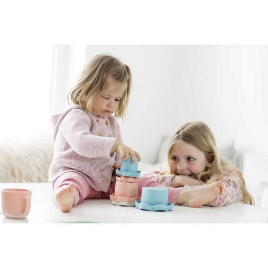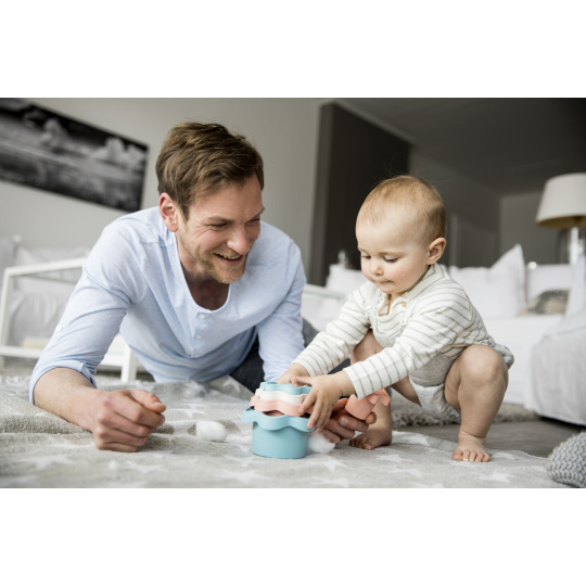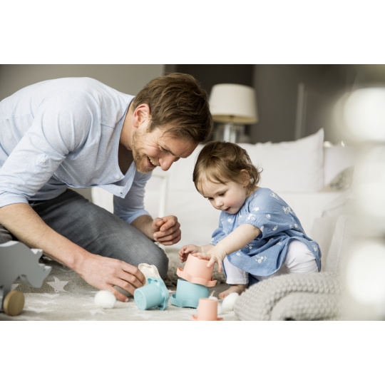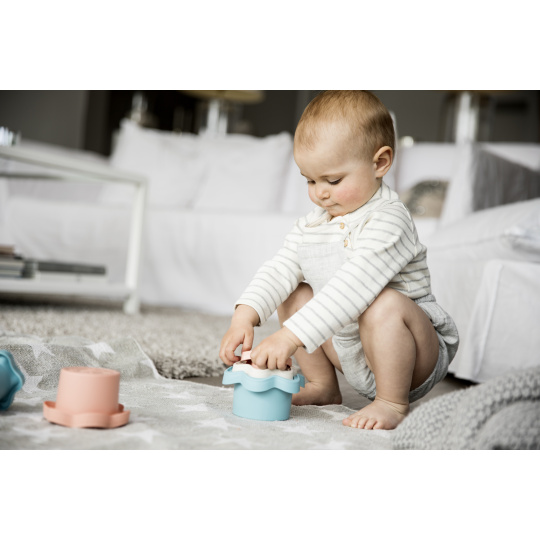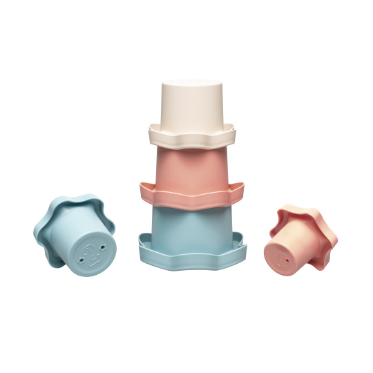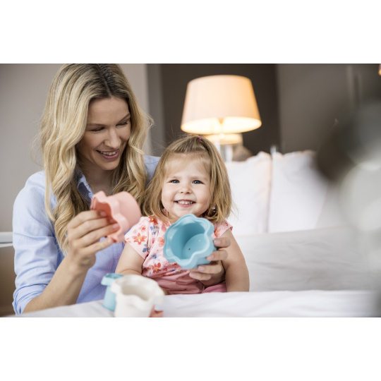 Bezpočet možností a variací - skládejte a hrajte si - na pískovišti, ve vodě, u stolu či na podlaze, nebo si postavte věž cca 30 cm vysokou. Skládání kalíšků podporuje rozvoj koordinace ruka-oko. Čísla a otvory na spodní straně kalíšku podporují první krůčky v počítání.