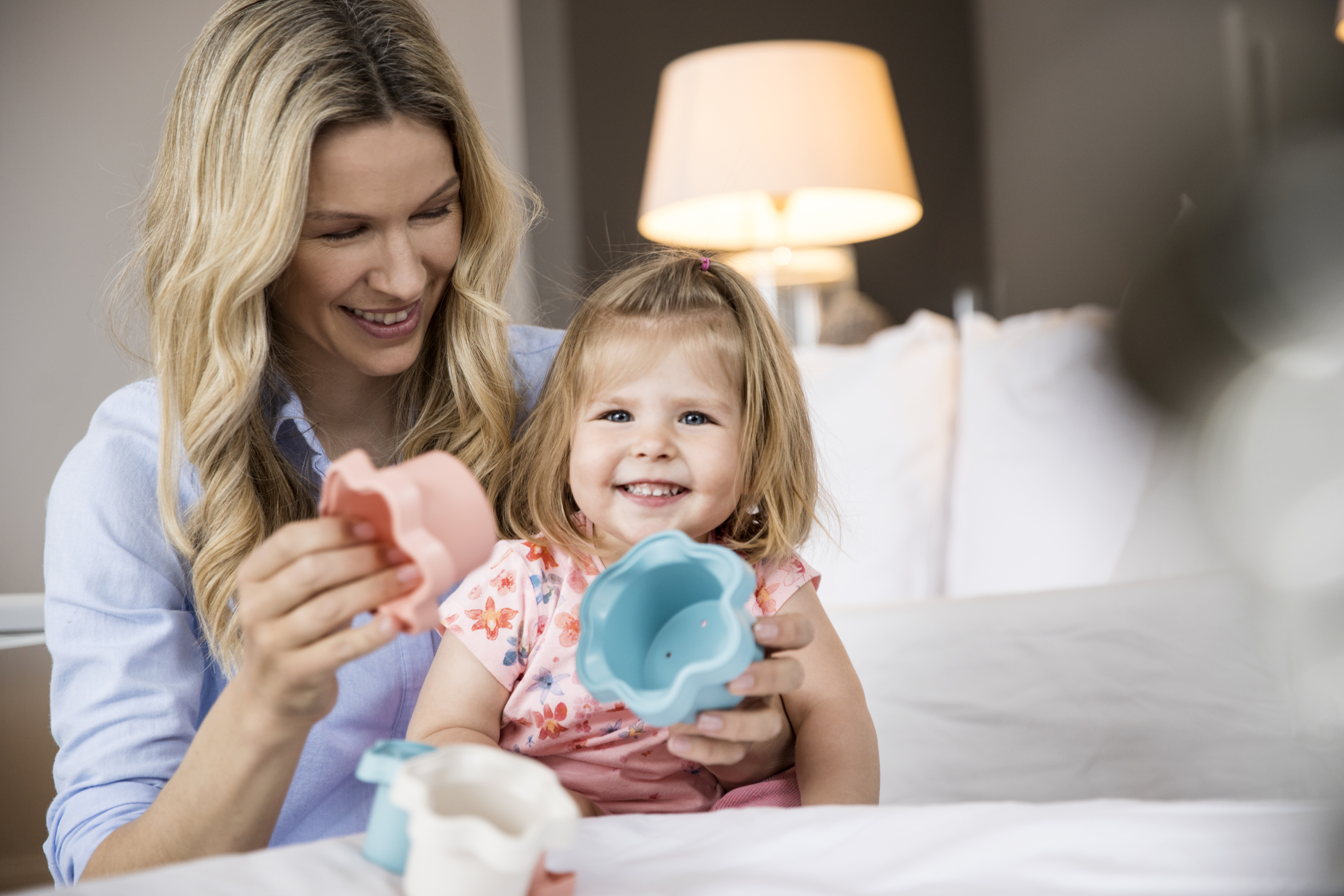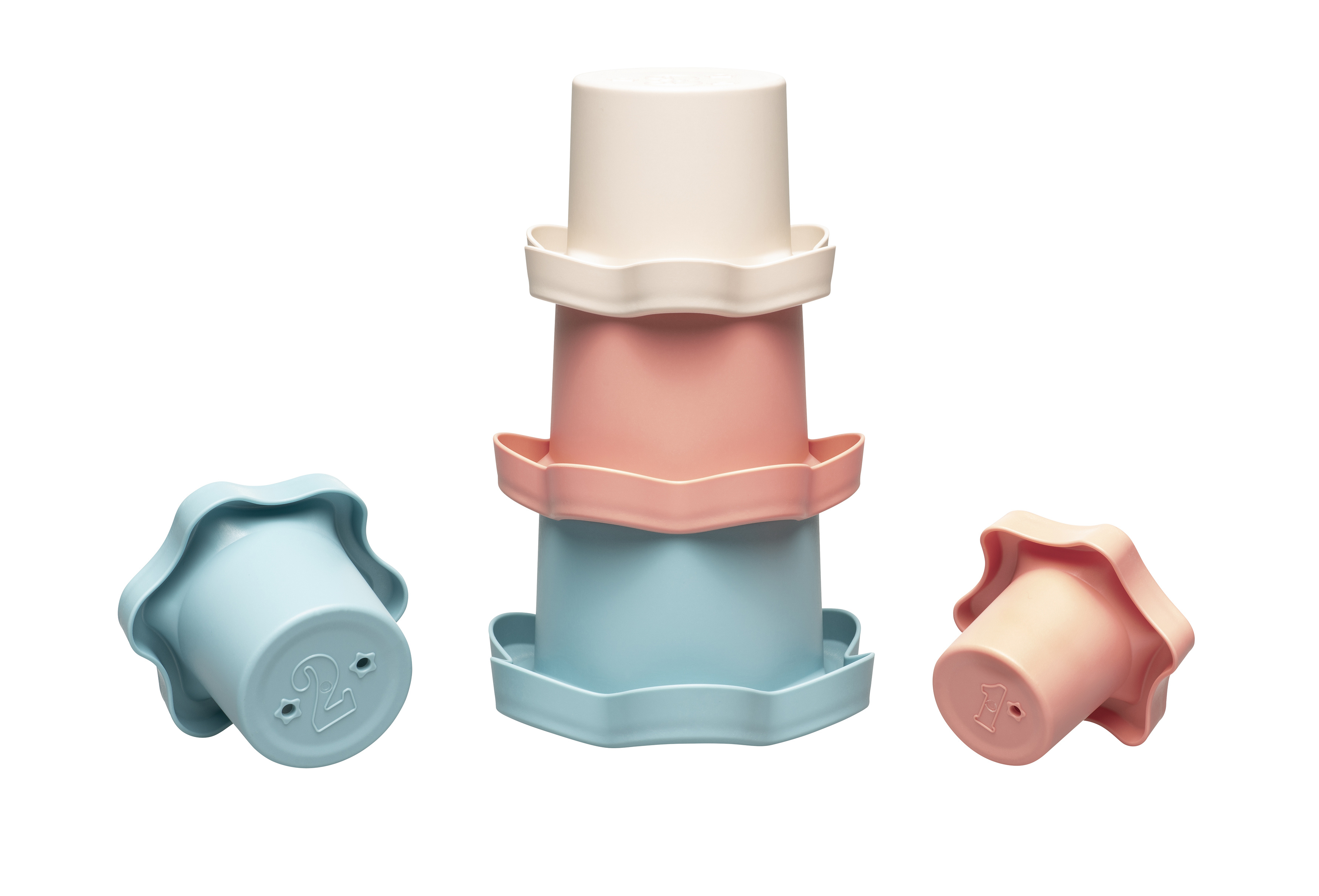 Bezpočet možností a variací - skládejte a hrajte si - na pískovišti, ve vodě, u stolu či na podlaze, nebo si postavte věž cca 30 cm vysokou. Skládání kalíšků podporuje rozvoj koordinace ruka-oko. Čísla a otvory na spodní straně kalíšku podporují první krůčky v počítání.