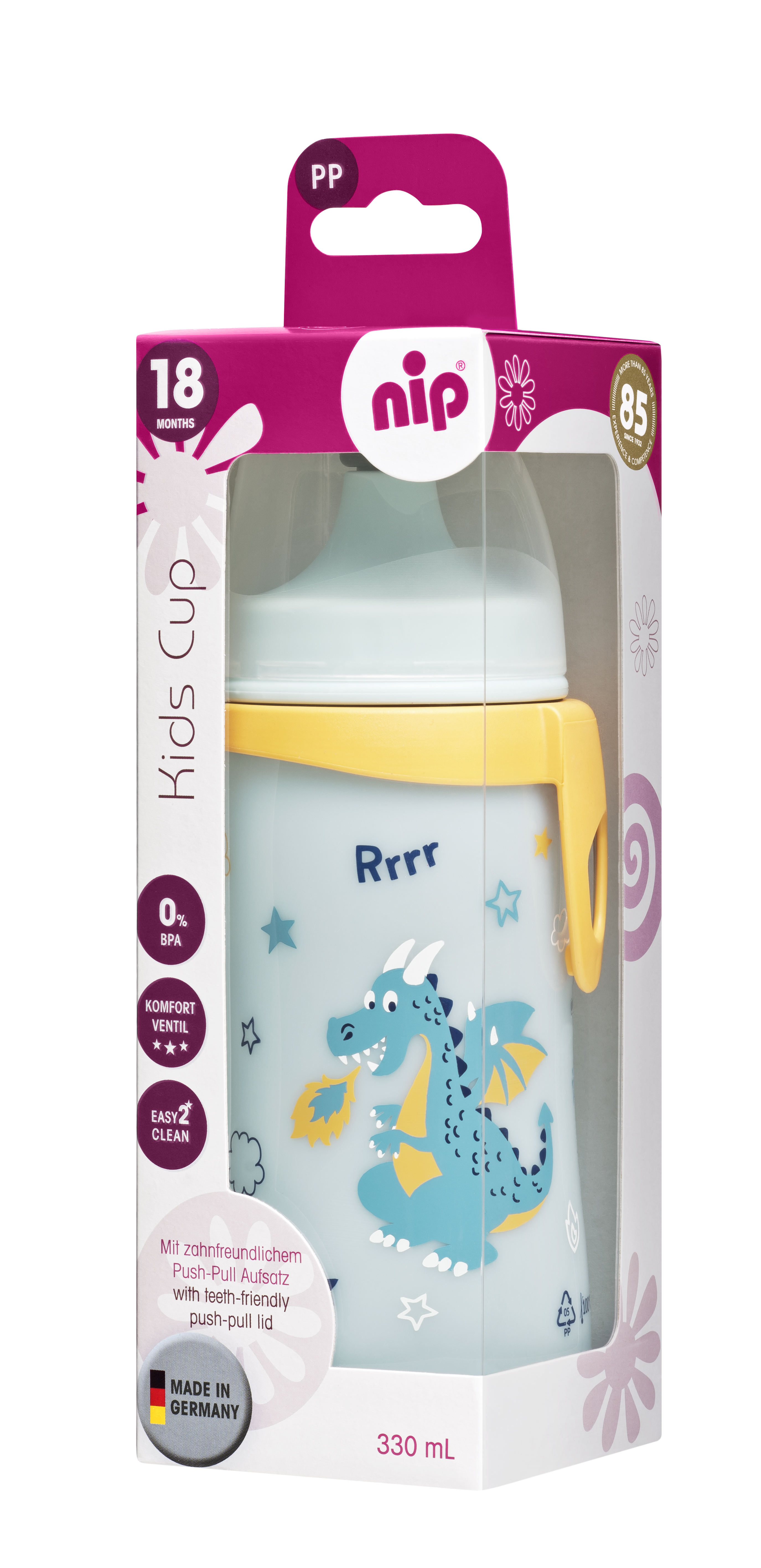 Trénovací láhve a hrnečky značky nip® nabízí dětem přátelský přechod k samostatnému pití, pomáhají dětem trénovat celý proces pití : uchopení, naklonění a přerušení.