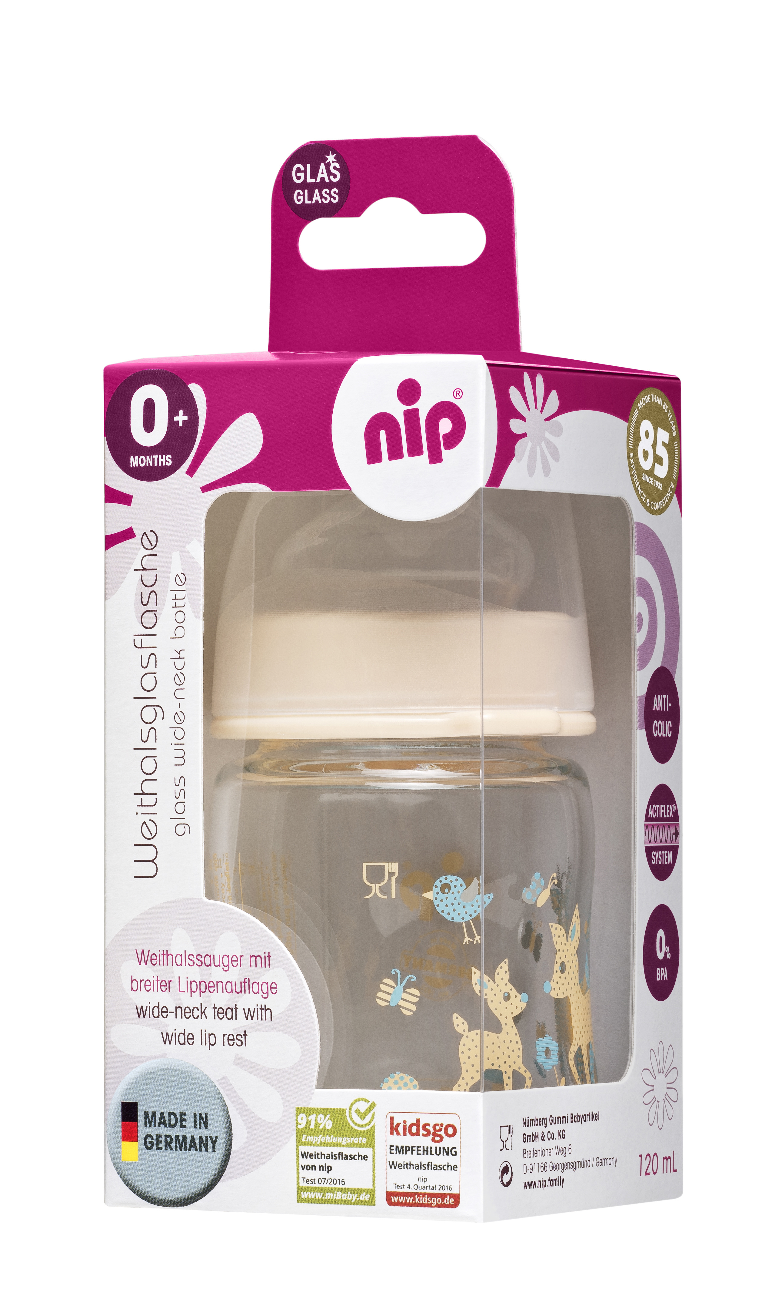 Lahvičky a dudlíky nip® jsou testovány nezávislými laboratořemi a splňují normu EN 14350.