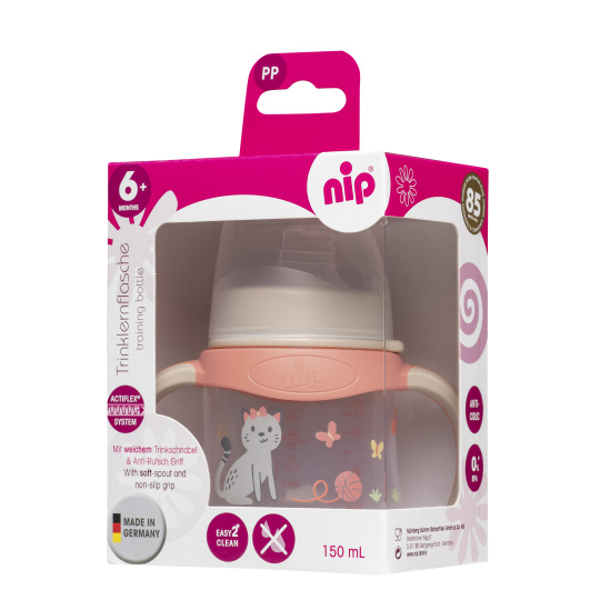 Trénovací láhve a hrnečky značky nip® nabízí dětem přátelský přechod k samostatnému pití, pomáhají dětem trénovat celý proces pití : uchopení, naklonění a přerušení.