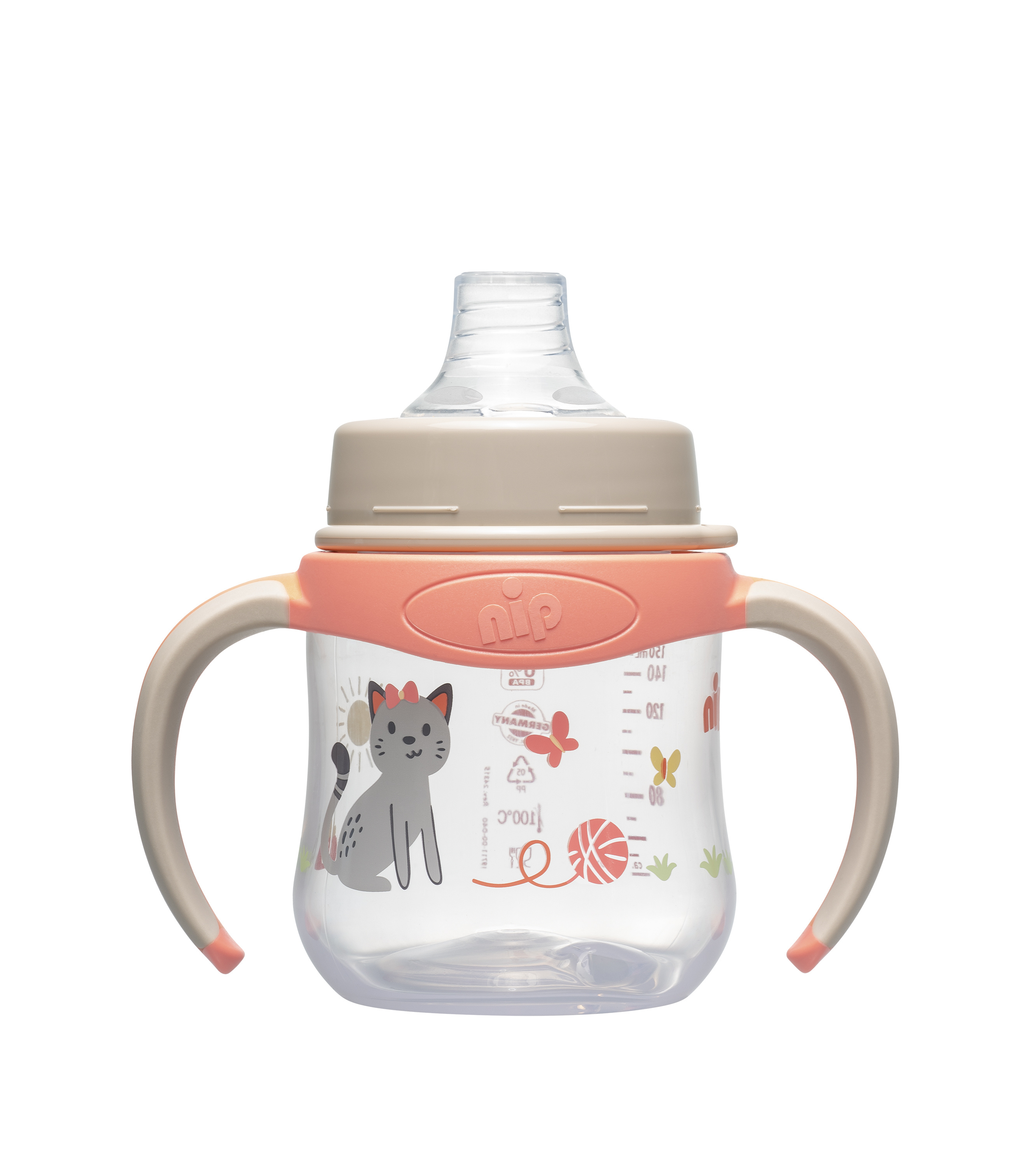 Trénovací láhve a hrnečky značky nip® nabízí dětem přátelský přechod k samostatnému pití, pomáhají dětem trénovat celý proces pití : uchopení, naklonění a přerušení.