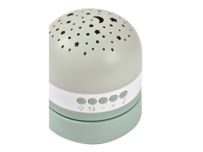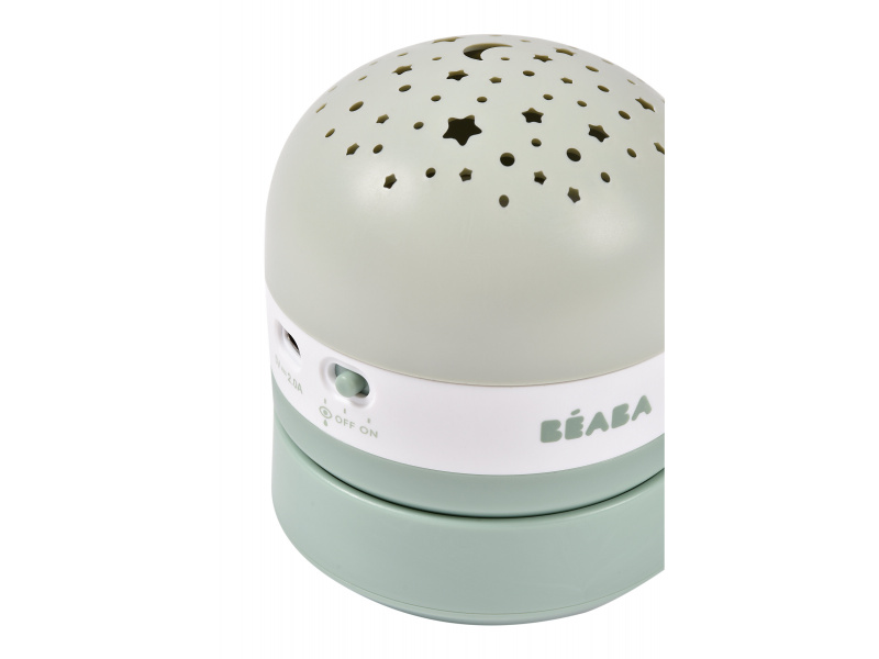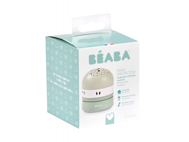 Proměňte dětský pokoj v kouzelný vesmír plný hvězd s projektorem Beaba Pixie. Projektor promítá na stěnu a strop hvězdné nebe ve třech barvách a nabízí relaxační hudbu i inteligentní funkce pro klidné usínání. Hvězdná projekce Vyberte si z režimů statické, pohyblivé nebo náhodné projekce. Na výběr tři barvy projekce s nastavitelným jasem - červená, zelená a modrá Díky manuálnímu nastavení můžete promítat hvězdy přesně tam, kam chcete. Hudba a zvuky Uklidněte své miminko pomocí čtyř ukolébavek, čtyř zvuků přírody a bílého šumu. Ideální pro vytvoření uklidňující atmosféry před spaním. Senzor pláče Projektor se automaticky znovu aktivuje při detekci pláče. Zapne červené světlo a hudbu, která podporuje tvorbu spánkového hormonu. Automatické vypnutí Zařízení se automaticky vypne po 20 minutách, aby nerušilo spánek a šetřilo energii. Dlouhá výdrž S výdrží baterie až 100 hodin je projektor ideálním společníkem pro každou noc. Snadné nabíjení Nabíjení je jednoduché pomocí přiloženého USB / USB-C kabelu. Adaptér není součástí balení – kompatibilní s jakýmkoli 5V USB portem. Vhodné pro děti od narození.