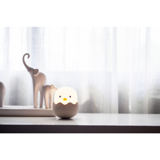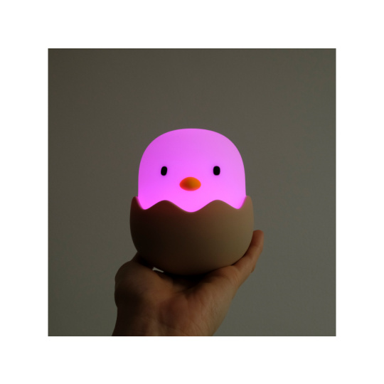 Noční světlo MegaLight Eggy Egg v podobě roztomilého kuřátka poskytne vašemu dítěti pocit bezpečí a pomůže mu tak zajistit klidný spánek. Díky svému designu bude i krásnou dekorací v dětském pokoji. LED světlo s nabíjecí baterií na výběr teplé bílé světlo a 7 RGB barev regulace intenzity světla časovač pro možnost vypnutí po 20, 40 nebo 60 minutách snadné ovládání dotykem životnost baterie až 200 hodin při ztlumeném režimu, 5 hodin při maximálním jasu nabíjení s pomocí přiloženého USB-C kabelu testováno v souladu se směrnicemi o hračkách Složení: polykarbonát, silikon Rozměry: 104 x 104 x 118 mm Vhodné pro děti od narození.