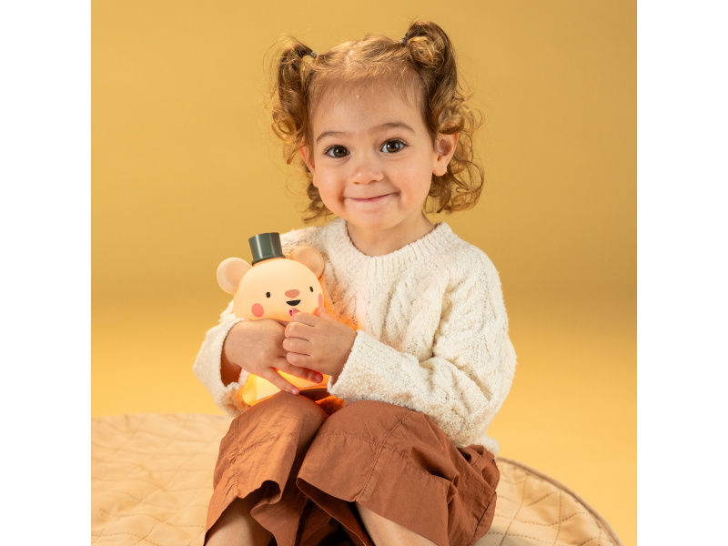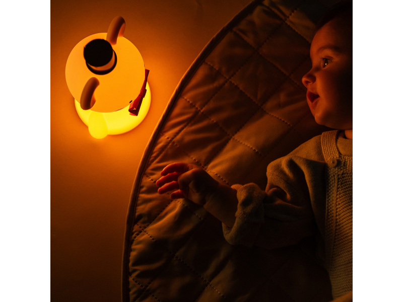 Dětská noční lampička v podbě roztomilého medvídka poskytuje jemné uklidňující světlo, které pomáhá dětem usnout s pocitem bezpečí. Lampička je vyrobena z jemného silikonu příjemného na dotek a nabíjí se pomocí USB-C kabelu. Funkce, které podporují klidný spánek: 3 úrovně jasu: teplé, jemné a jasné světlo – přizpůsobitelné pro noční krmení, přebalování i uspávání 30-minutový časovač: automatické zhasnutí po půl hodině – ideální pro vytvoření klidné rutiny usínání Nabíjení přes USB-C – dobití za 2 hodiny, výdrž až 6 hodin na jedno nabití Bezpečné pro děti: Vyrobeno z měkkého potravinářského silikonu – bez BPA, ftalátů, olova, rtuti i PVC Bezpečné i pro nejmenší – lampičku lze bez obav zmáčknout, držet i prozkoumávat Podpora rozvoje dítěte: Jemné světlo pomáhá dětem rozlišovat světlo a tmu, rozvíjí zrakové vnímání a orientaci Dotykové ovládání (poklepáním) podporuje koordinaci ruky a oka, učí příčinu a následek Klidné prostředí napomáhá kvalitnějšímu spánku a odpočinku Rozměry: 145 × 95 × 112 mm Složení: měkký silikon (bezpečný pro děti) Barva světla: teplá bílá (nastavitelná ve třech úrovních jasu) Napájení: nabíjecí (USB-C), výdrž až 6 hodin, dobití za 2 h Funkce: časovač 30 minut, dotykové ovládání Obsah balení: 1× lampička, 1× USB-C kabel