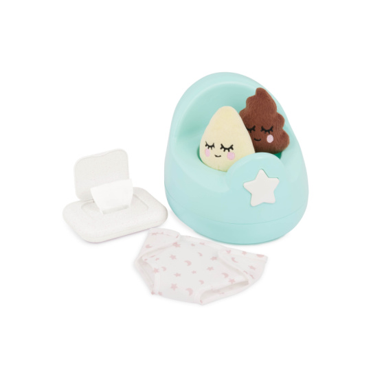 S touto zábavnou tréninkovou sadou LullaBaby vaše děti mohou naučit svou panenku chodit na nočník. Nočník nabízí pro větší zábavu dva veselé zvukové efekty, které podpoří hru na každodenní situace. Součástí sady je kromě nočníku plenka, krabička s ubrousky a dvě plyšové hračky. Sada pomáhá během pečující hry rozvíjet jemnou motoriku, představivost i sociální dovednosti. Vhodné pro většinu panenek velikosti 35 cm. Vyměnitelné baterie 3xAAA součástí výrobku. Panenka není součástí balení. Vhodné pro děti od 2 let.
