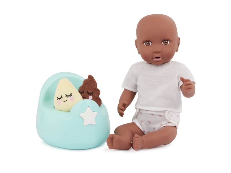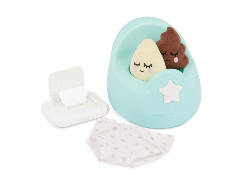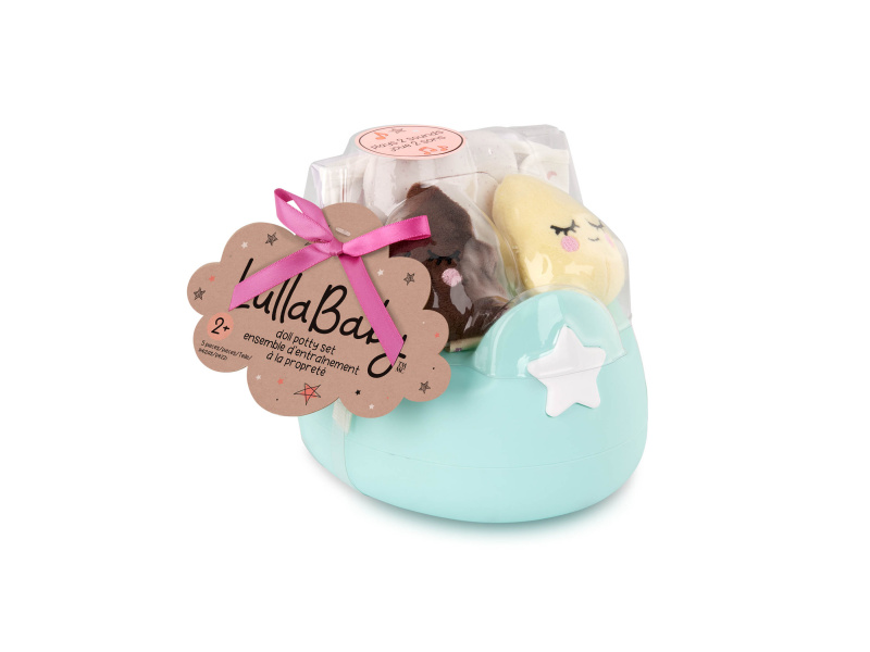 S touto zábavnou tréninkovou sadou LullaBaby vaše děti mohou naučit svou panenku chodit na nočník. Nočník nabízí pro větší zábavu dva veselé zvukové efekty, které podpoří hru na každodenní situace. Součástí sady je kromě nočníku plenka, krabička s ubrousky a dvě plyšové hračky. Sada pomáhá během pečující hry rozvíjet jemnou motoriku, představivost i sociální dovednosti. Vhodné pro většinu panenek velikosti 35 cm. Vyměnitelné baterie 3xAAA součástí výrobku. Panenka není součástí balení. Vhodné pro děti od 2 let.