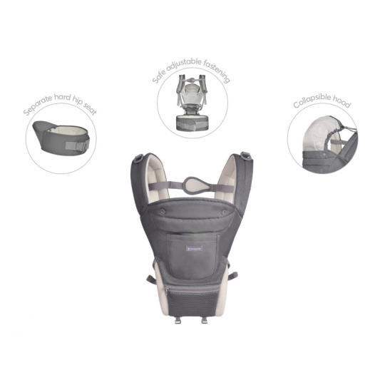 Nosítko KikkaBoo Chloe nabízí 3 možnosti použití: měkké nosítko nosítko s bederním sedákem samostatný bederní sedák Měkké nosítko i nosítko s bederním sedákem umožňuje nošení dítěte směrem k rodiči, směrem od rodiče i na zádech. Samostatný bederní sedák umožňuje nošení dítěte směrem k rodiči i směrem od rodiče. Široký bederní pás pomáhá rozložit váhu dítěte od pasu po horní část zad rodiče. Pohodlné nošení zaručují nastavitelné polstrované ramenní popruhy s hrudním pásem. Přední kapsa na zip umožňuje bezpečné uložení drobností. Nosítko je pro pohodlí dítěte vyrobeno ze síťovaného prodyšného materiálu. Skládací sluneční clona pomáhá chránit hlavičku dítěte před sluncem. Složení: 100% polyester Vhodné pro děti od 5 měsíců do 15 kg.
