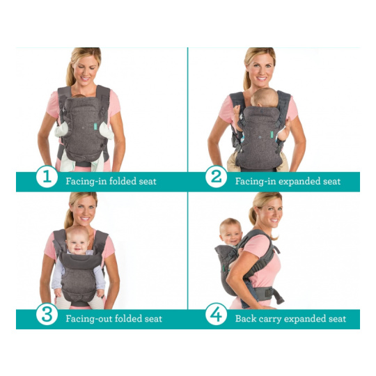 Unikátní nosítko Flip 4v1 Convertible využijete od kojeneckého do batolecího věku dítěte. Nabízí 4 způsoby nošení dítěte: úzké sezení směrem k rodiči široké sezení směrem k rodiči sezení směrem od rodiče sezení na zádech rodiče Pro nejmenší miminka je určeno úzké sezení směrem k rodiči s nastavitelnou polstrovanou opěrkou hlavy. Pro větší děti využijete široké ergonomické sezení směrem k rodiči i směrem od rodiče či na zádech. Podpůrný bokový pás pomáhá rozložit hmotnost nošeného dítěte na boky rodiče. Pohodlí při nošení pomáhá i polstrování ramenních popruhů. Nosítko je vhodné pro děti od 3,6 do 14,5 kg.