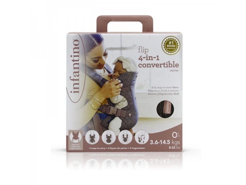 Unikátní nosítko Flip 4v1 Convertible využijete od kojeneckého do batolecího věku dítěte. Nabízí 4 způsoby nošení dítěte: úzké sezení směrem k rodiči široké sezení směrem k rodiči sezení směrem od rodiče sezení na zádech rodiče Pro nejmenší miminka je určeno úzké sezení směrem k rodiči s nastavitelnou polstrovanou opěrkou hlavy. Pro větší děti využijete široké ergonomické sezení směrem k rodiči i směrem od rodiče či na zádech. Podpůrný bokový pás pomáhá rozložit hmotnost nošeného dítěte na boky rodiče. Pohodlí při nošení pomáhá i polstrování ramenních popruhů. Nosítko je vhodné pro děti od 3,6 do 14,5 kg.