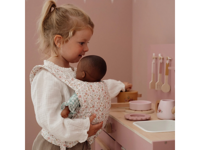 S nosítkem pro panenky Little Dutch si děti mohou vzít svou oblíbenou panenku nebo plyšového kamaráda kamkoli s sebou. Díky měkkým polstrovaným ramenním popruhům a pevnému bedernímu pásu sedí panenka bezpečně a pohodlně. Nosítko umožňuje nošení panenky jak čelem k sobě, tak čelem dopředu – stejně jako u skutečného nosítka. Hra na pečování podporuje rozvoj fantazie, empatie i sociálních dovedností. Polstrované nastavitelné ramenní popruhy pro pohodlné nošení Bezpečný bederní pás pro stabilitu panenky Možnost nošení panenky čelem k sobě i čelem dopředu Podporuje hru na role a rozvoj představivosti Stylový květinový design krásně ladí s dalšími doplňky pro panenky z kolekce Little Dutch Soft Flowers. Rozměry: 26 × 5 × 29 cm Panenka není součástí balení. Vhodné pro děti od 3 let.