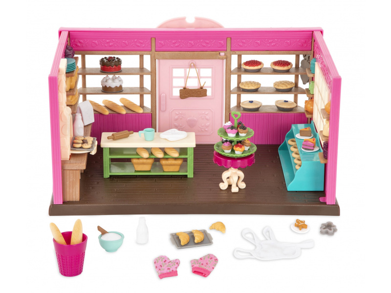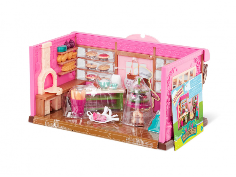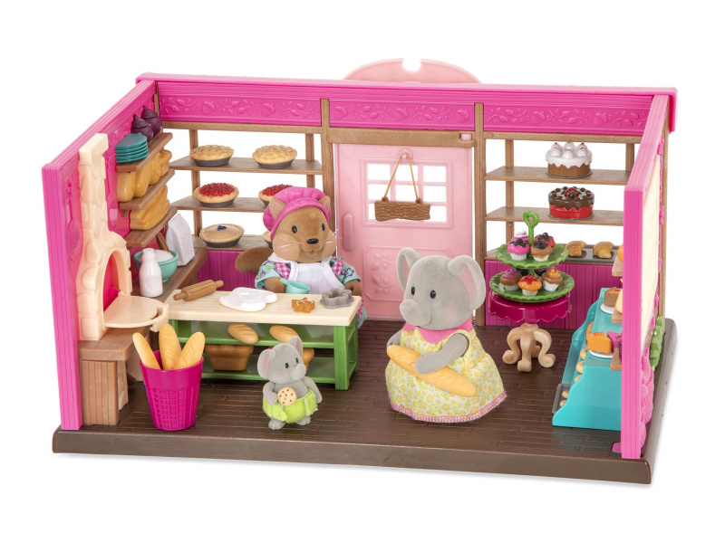 Obchod s pečivem láká obyvatele městečka Honeysuckle Hollow každý den vůní čerstvě upečeného chleba, baget i koláčů. Vyberte některou ze samostatně prodávaných postaviček zvířátek Li'l Woodzeez, vybavte ji zástěrou a chňapkami a může začít péct novou várku sušenek! 69-dílná sada obsahuje pekárnu, odměrku, sáček na mouku, police, stojan, kulatý stůl, 3 talíře, stojan s 9 cupcakes, 2 koláčky, 3 plátky koláče, 6 koláčů, 2 láhve na mléko, mixovací nádobu, tác na sušenky se 6 sušenkami, tác na croissanty se 3 croissanty, koš na bagety s 5 bagetami, váleček, hrudku těsta s vykrojeným kusem, vykrajovátka na cukroví, perníček, 5 bochníků chleba, 5 bagelů, ceduli na dveře, zástěru, 2 chňapky. Postavičky zvířátek nejsou součástí balení, prodávají se samostatně. Samostatně prodávané postavičky zvířátek Li'l Woodzeez jsou vyrobené z měkkého příjemného materiálu a mají pohyblivé ruce, nohy i hlavy pro zábavnou předstíranou hru. Součástí samostatně prodávané nabídky doplňků Li'l Woodzeez jsou domečky, obchody i dopravní prostředky. Všechny postavičky a doplňky Li'l Woodzeez jsou navzájem kompatabilní a umožní vám vytvořit originální městečko pro nekonečnou hru rozvíjející fantazii a kreativitu vašeho dítěte. Rozměry: 30 x 20 x 16 cm Vhodné pro děti od 3 let.