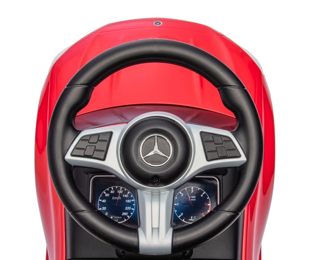 Realistický design inspirovaný modelem Mercedes C-Class zaujme detaily jako elegantní provedení, gumová kola, logo značky, volant se zvuky a "přístroje," což podporuje dětskou představivost a umožňuje kreativní hru.