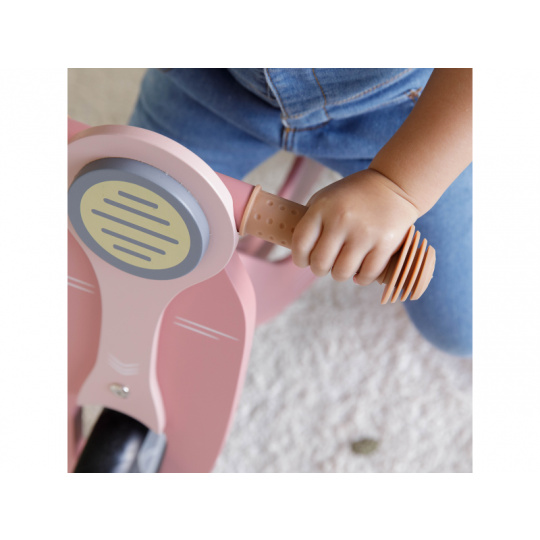 Dětské odrážedlo ve zcela originálním dřevěném provedení v podobě skútru má měkké pohodlné sedadlo, které je možné nastavit do tří poloh dle výšky dítěte. Plastová kola zaručují hladkou jízdu. Jízda na odrážedle stimuluje rozvoj smyslu pro rovnováhu dítěte a rozvíjí jeho hrubou motoriku. Rozměry: 82 x 37 x 58 cm Výška sedadla: 31 / 33 / 35 cm Nosnost: 30 kg Vhodné pro děti od 2 let.