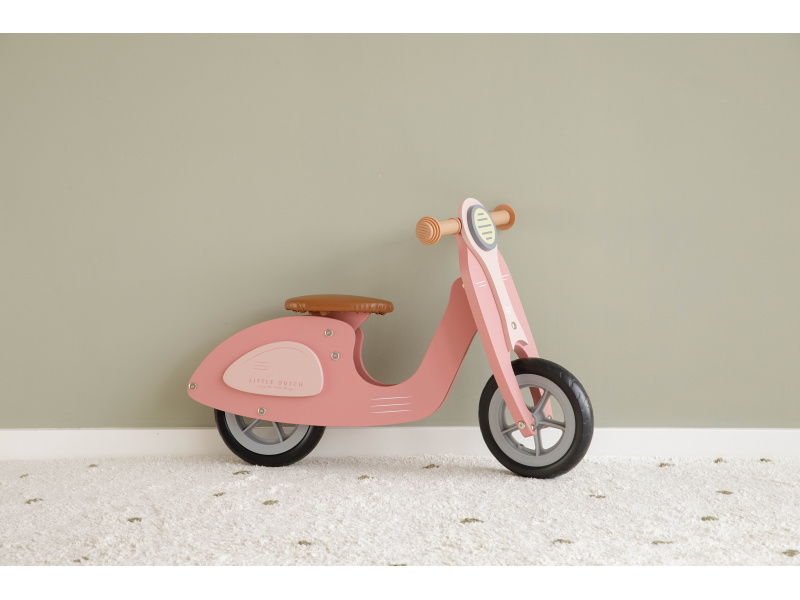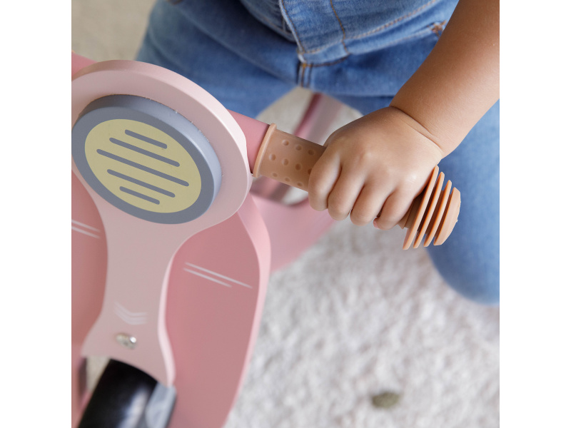 Dětské odrážedlo ve zcela originálním dřevěném provedení v podobě skútru má měkké pohodlné sedadlo, které je možné nastavit do tří poloh dle výšky dítěte. Plastová kola zaručují hladkou jízdu. Jízda na odrážedle stimuluje rozvoj smyslu pro rovnováhu dítěte a rozvíjí jeho hrubou motoriku. Rozměry: 82 x 37 x 58 cm Výška sedadla: 31 / 33 / 35 cm Nosnost: 30 kg Vhodné pro děti od 2 let.