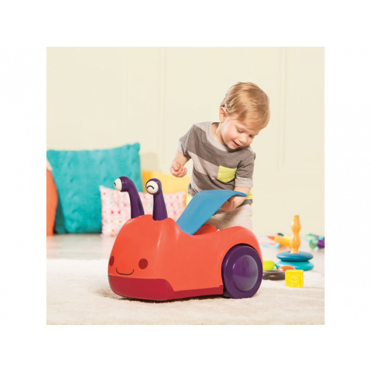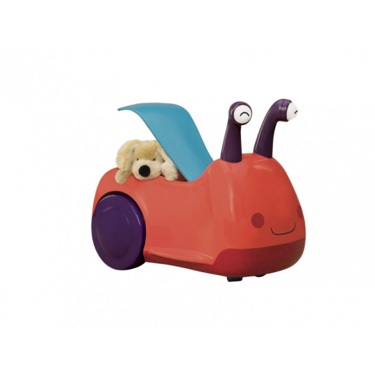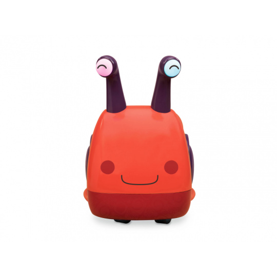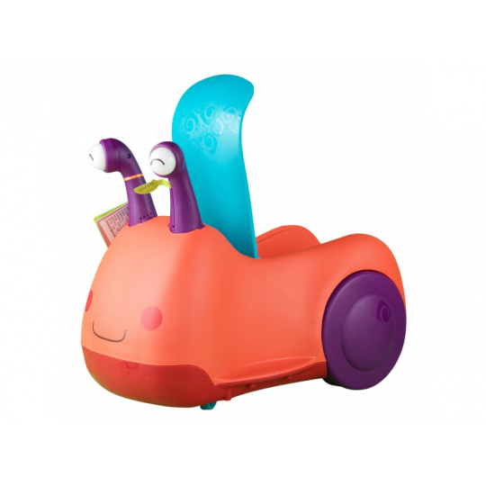 Odrážedlo v podobě usměvavého šneka vůbec není pomalé jako šnek! Otočná přední kolečka usnadňují manévrování, úložný prostor pod sedadlem se hodí na uložení oblíbené hračky nebo svačinky. Pro větší zábavu během jízdy oči šnečka po zmáčknutí svítí a vydávají zvuky. Baterie 3xAAA jsou součástí. Plyšová hračka není součástí výrobku. Rozměry: 50 x 27 x 38 cm Vhodné pro děti od 1 do 3 let.