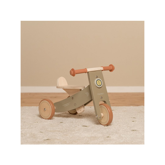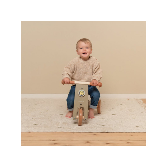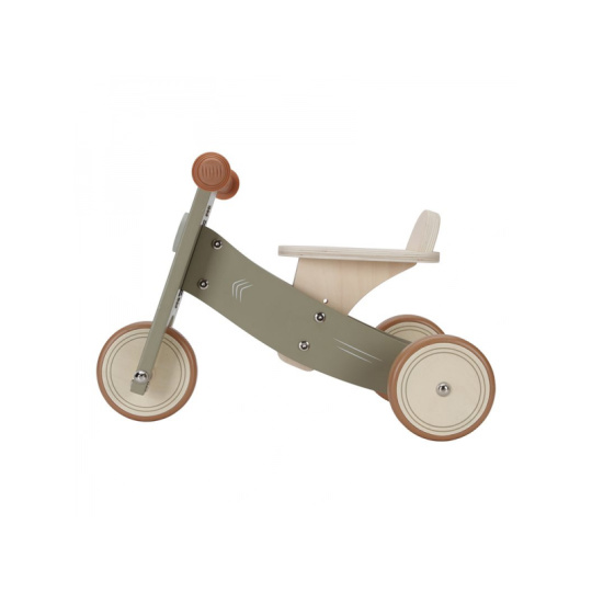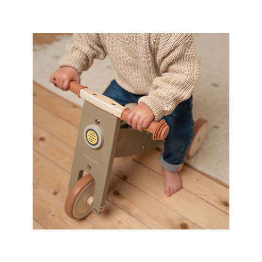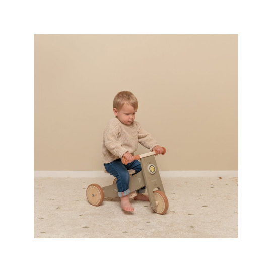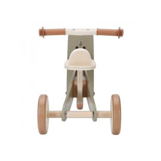 Dětské odrážedlo v krásném dřevěném provedení se třemi koly pro větší stabilitu. Kola mají pryžovou hranu pro hladkou jízdu, pryžové rukojeti řídítek poskytují příjemné držení a ovládání odrážedla. Robustní sedadlo umožňuje pohodlné a stabilní sezení. Jízda na odrážedle stimuluje rozvoj smyslu pro rovnováhu dítěte a rozvíjí jeho hrubou motoriku. Rozměry: 56,5 x 35,6 x 35,8 Vhodné pro děti od 12 měsíců.