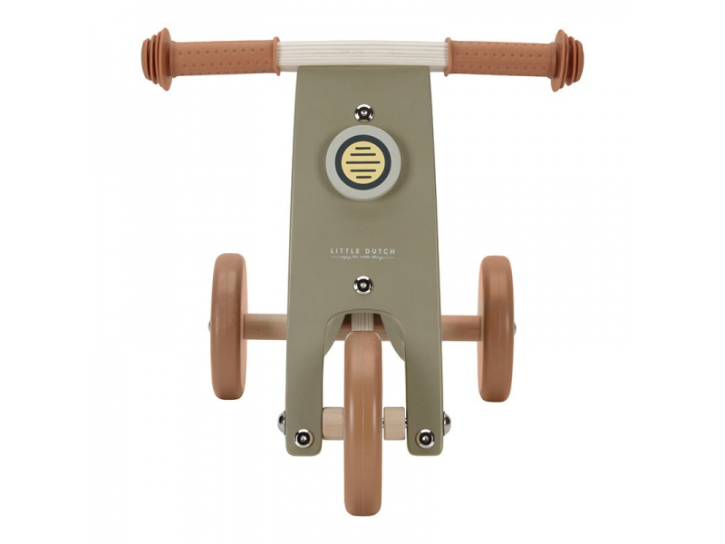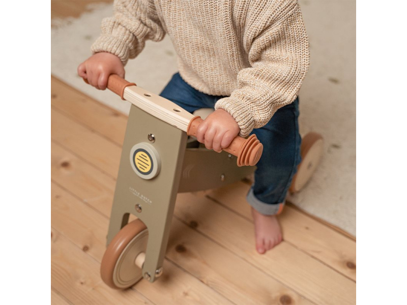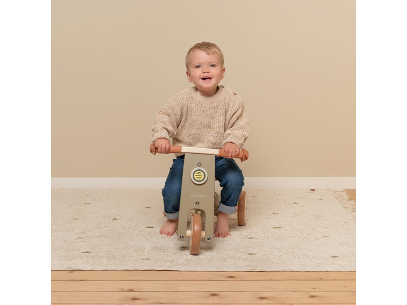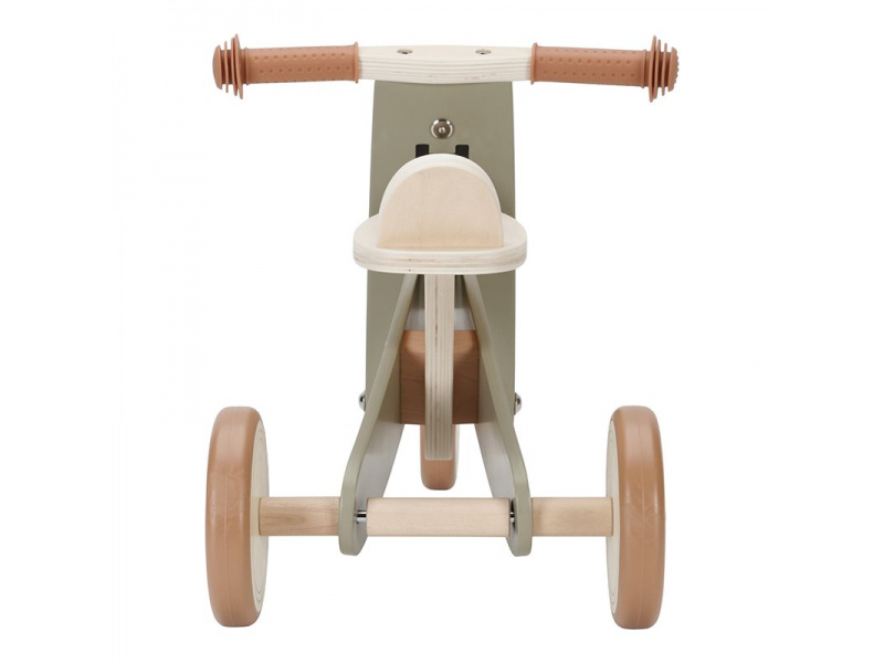 Dětské odrážedlo v krásném dřevěném provedení se třemi koly pro větší stabilitu. Kola mají pryžovou hranu pro hladkou jízdu, pryžové rukojeti řídítek poskytují příjemné držení a ovládání odrážedla. Robustní sedadlo umožňuje pohodlné a stabilní sezení. Jízda na odrážedle stimuluje rozvoj smyslu pro rovnováhu dítěte a rozvíjí jeho hrubou motoriku. Rozměry: 56,5 x 35,6 x 35,8 Vhodné pro děti od 12 měsíců.
