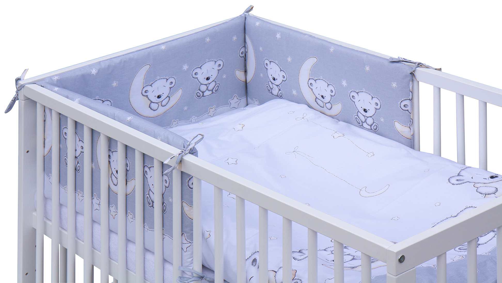 Součástí balení je kompletní výbava – kvalitní matrace, roztomilá sada povlečení, mantinel a prostěradlo, takže máte vše potřebné hned po rozbalení.