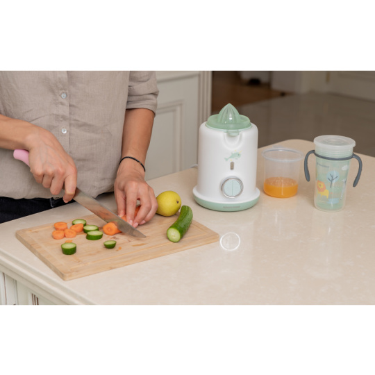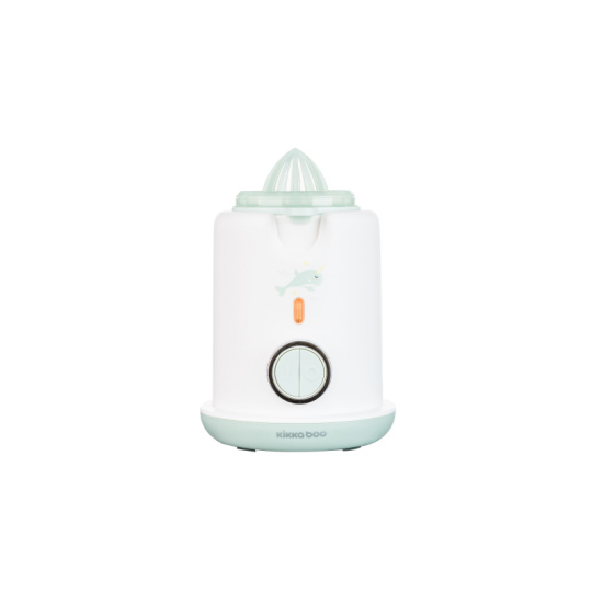 Ohřívačka KikkaBoo 3v1 Warmy je multifunkční produkt, který lze použít jako ohřívačku, sterilizátor a odšťavňovač. Nabízí funkci rychlého ohřevu kojeneckých lahví s mlékem nebo dětských příkrmů ve skleničce, mléko dokáže ohřát na optimální teplotu do 3 minut. Přístroj je možné využít i jako sterilizátor na jednu lahvičku. K ohřevu mléka a příkrmů i ke sterilizaci využívá páru. Odšťavňovací nástavec umožňuje snadnou přípravu čerstvé ovocné šťávy. Ideální pro přípravu pomerančové nebo citronové šťávy, odšťavňování se provádí ručně do kelímku, který je součástí odšťavňovacího nástavce. Díky kompaktní velikosti je ohřívačka vhodná na použití doma i na cestách. Rozměry: 14 x 14,4 x 21 cm Průměr nádoby: 7,5 cm Hmotnost: 690 g